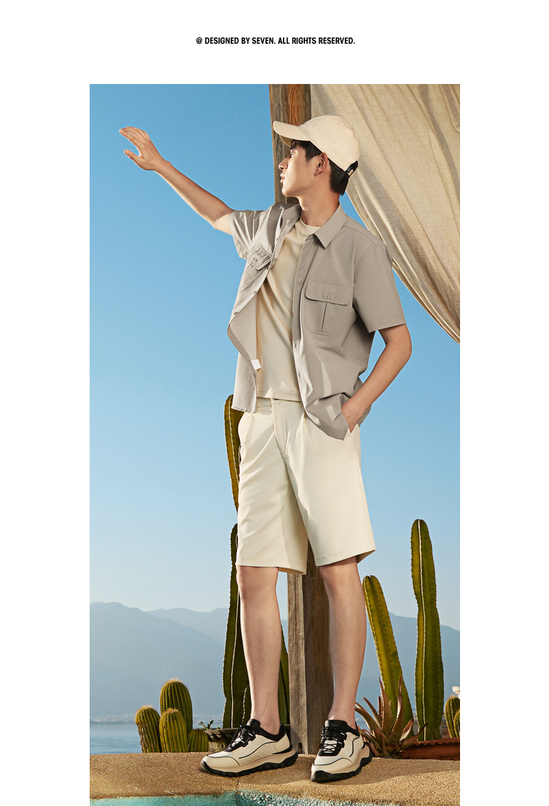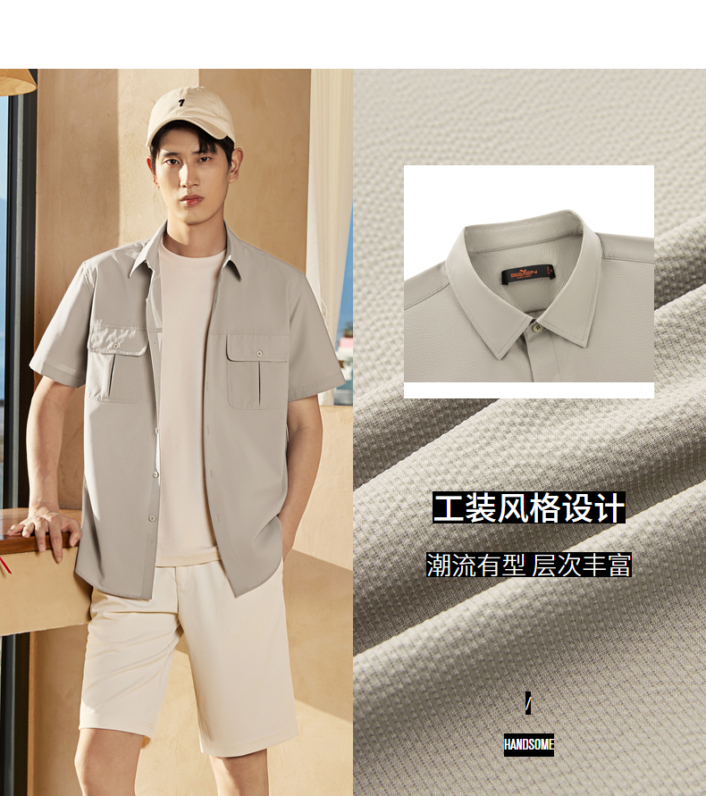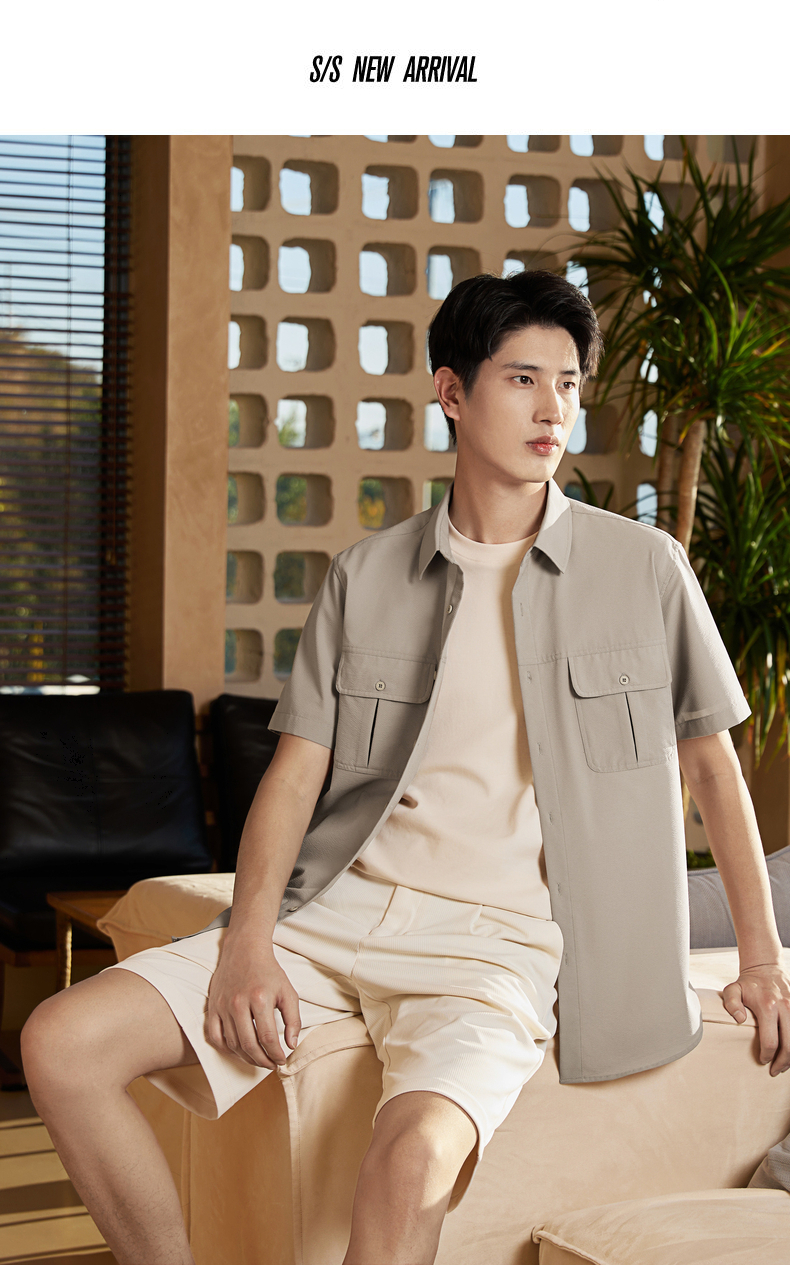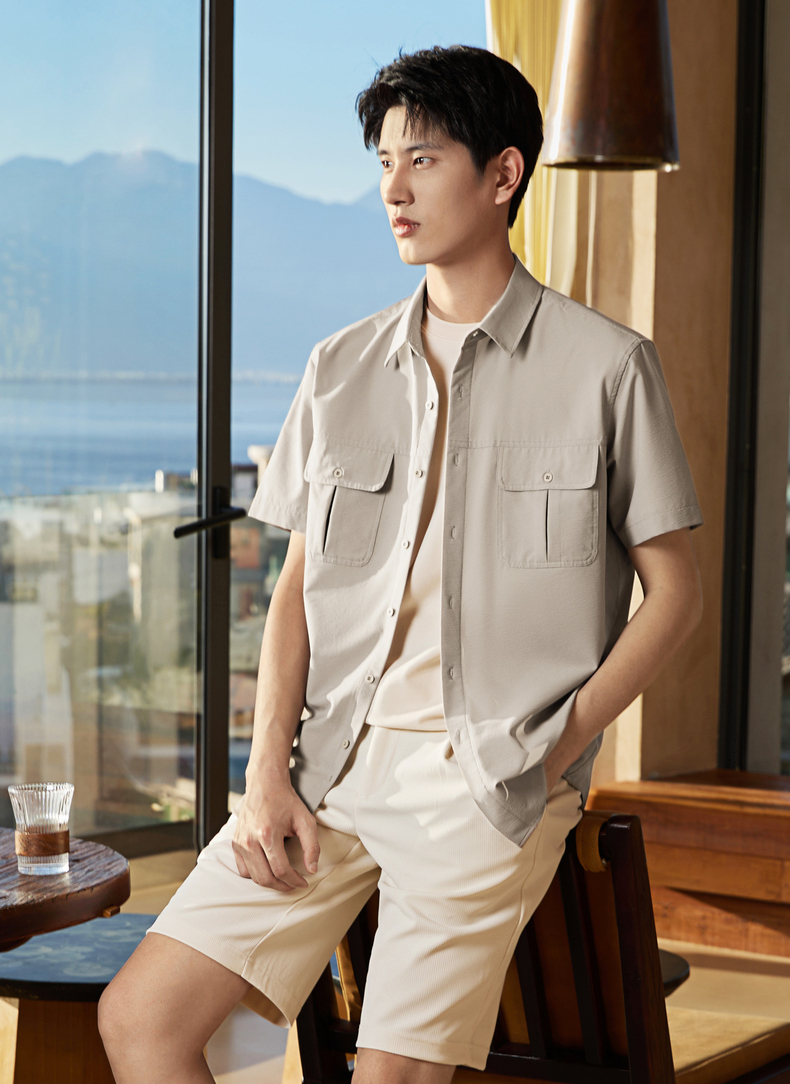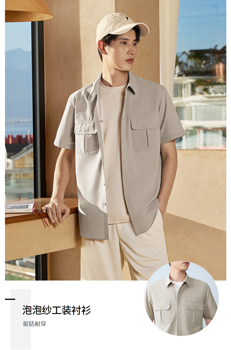 【工装衬衫】柒牌男装2026夏季泡泡纱肌理挺括潮流休闲短袖衬衫 130A70180