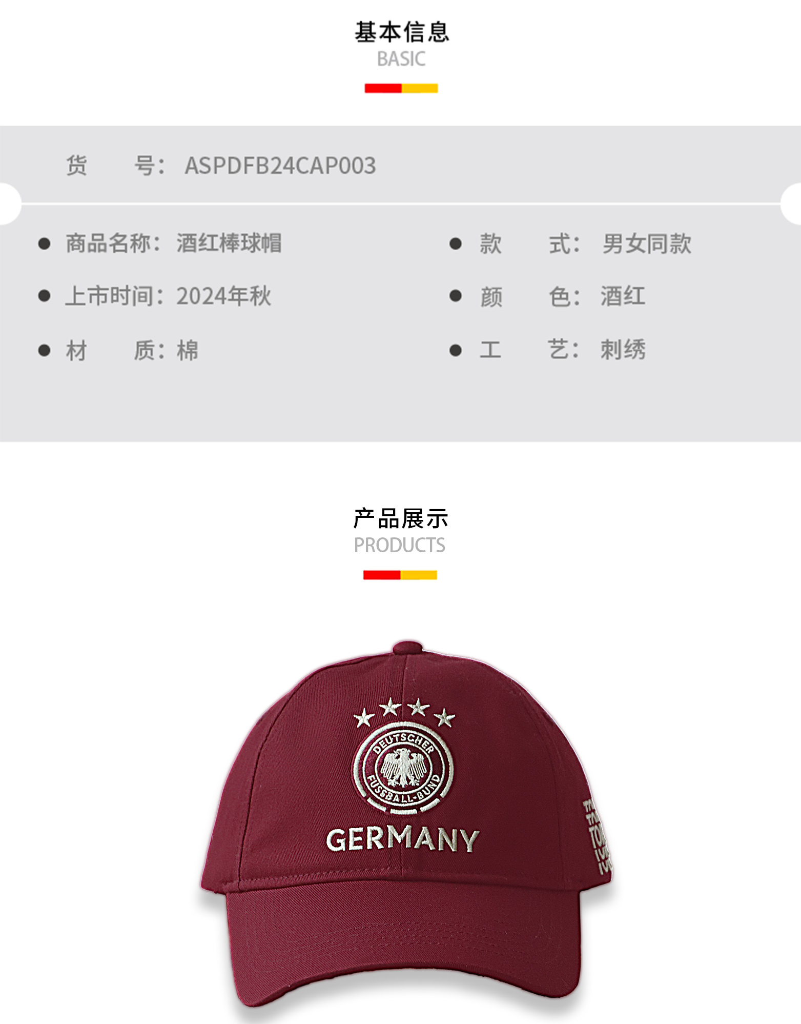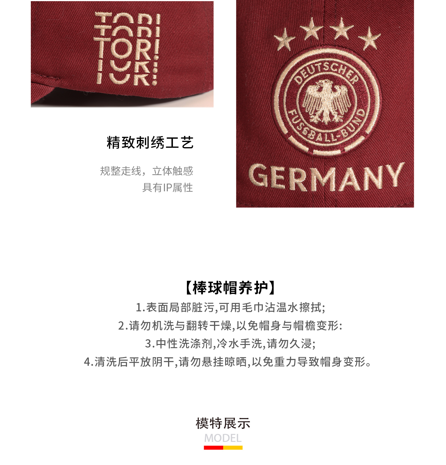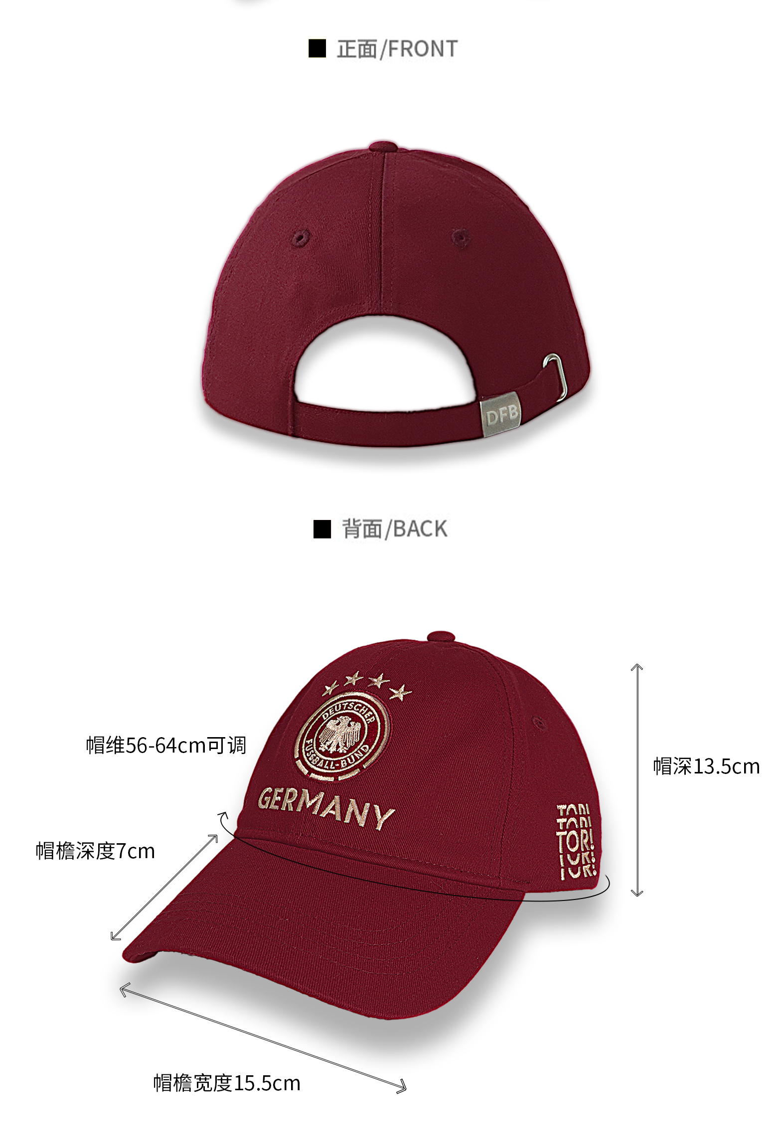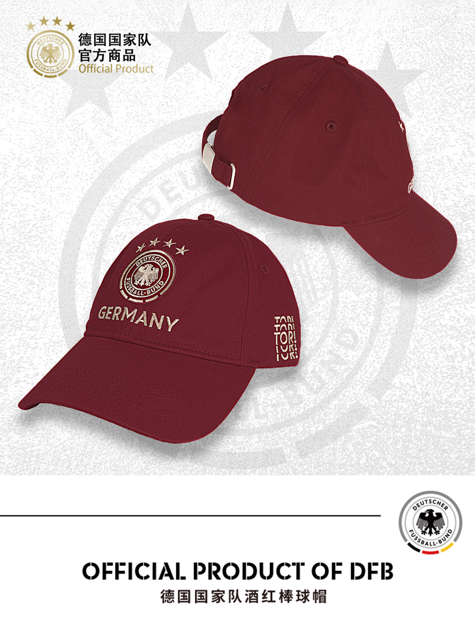 【官方正版】德国国家队 | 酒红棒球帽运动遮阳鸭舌帽刺绣复古休闲潮流百搭