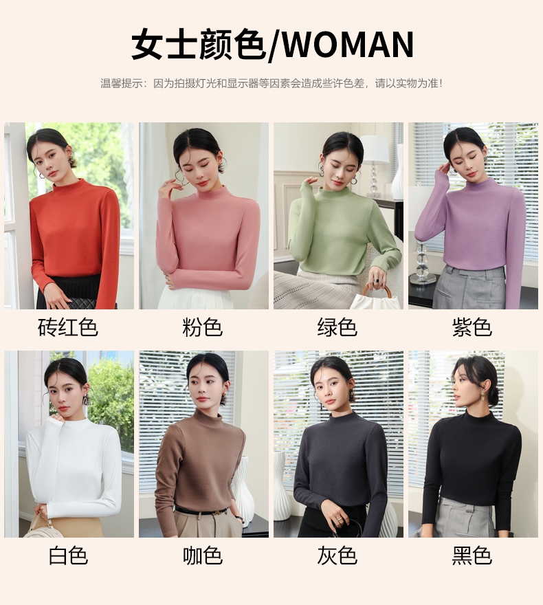 【男女同款】罗蒙秋冬打底衫舒适半高领套头衫多色弹力休闲显瘦内搭男女上衣T恤卫衣