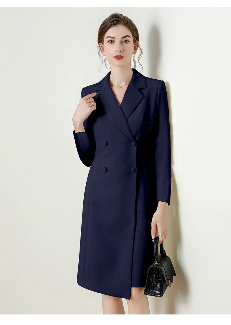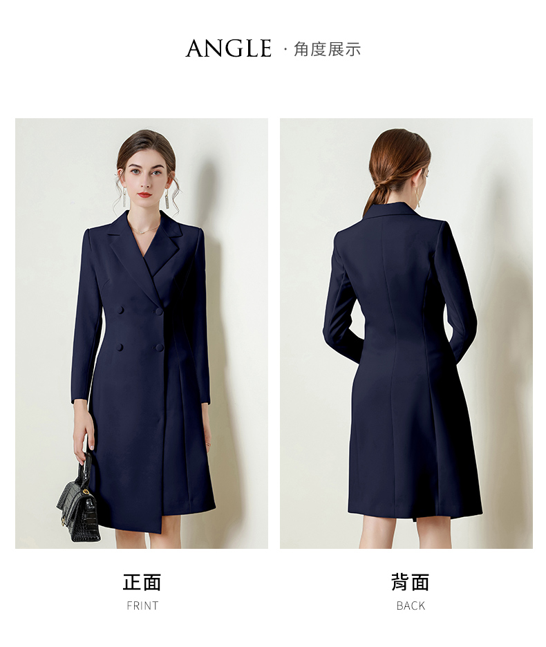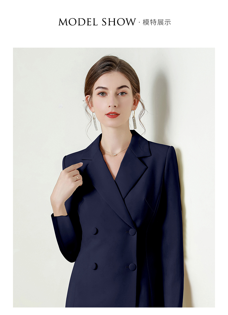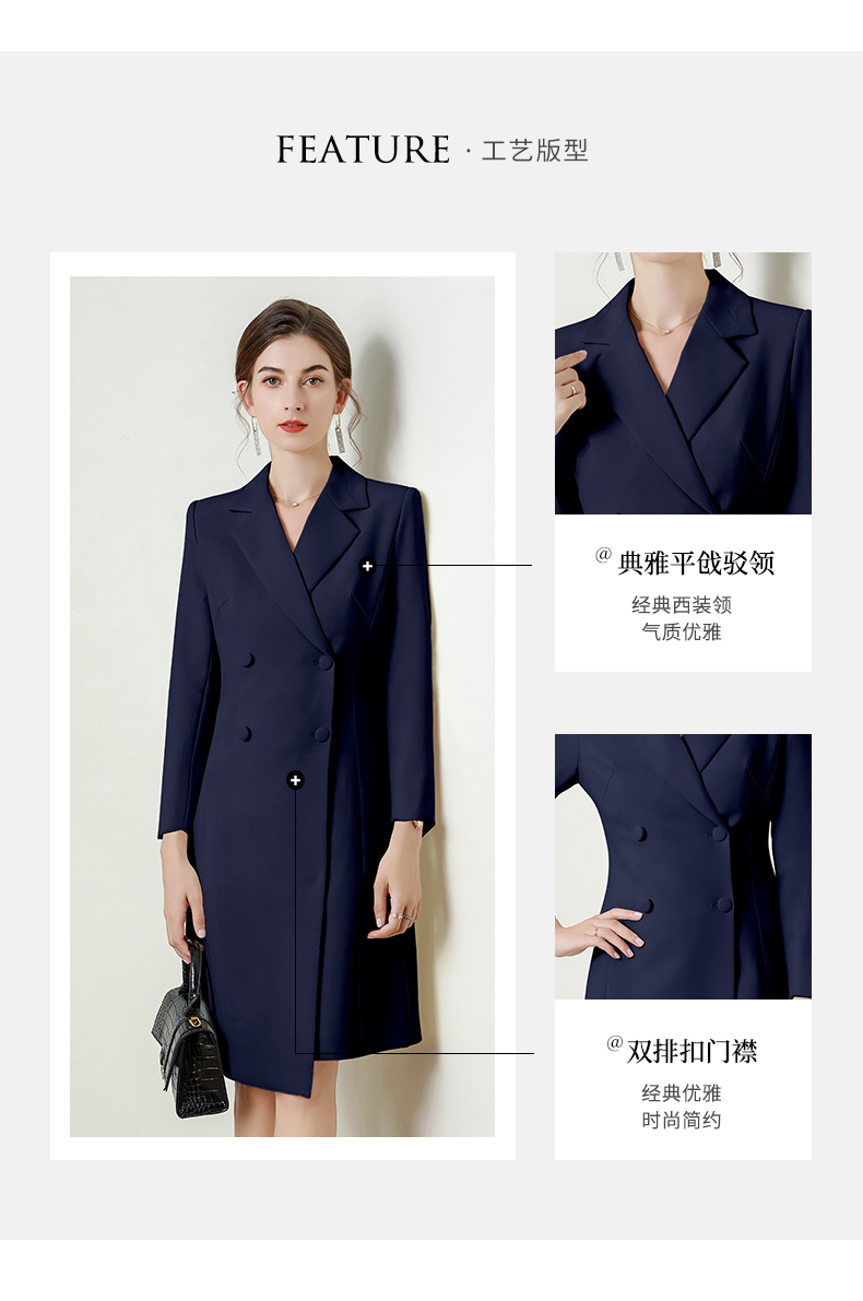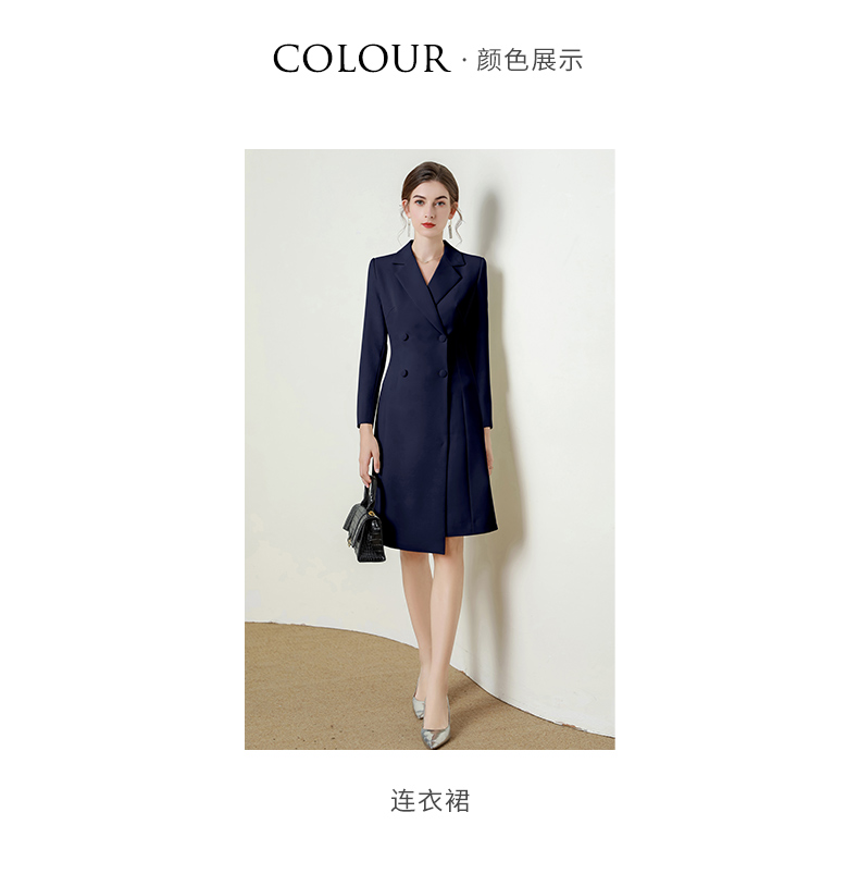 IWY/藏青色长袖西装连衣裙气质时尚通勤干练售楼部接待职业裙Q824