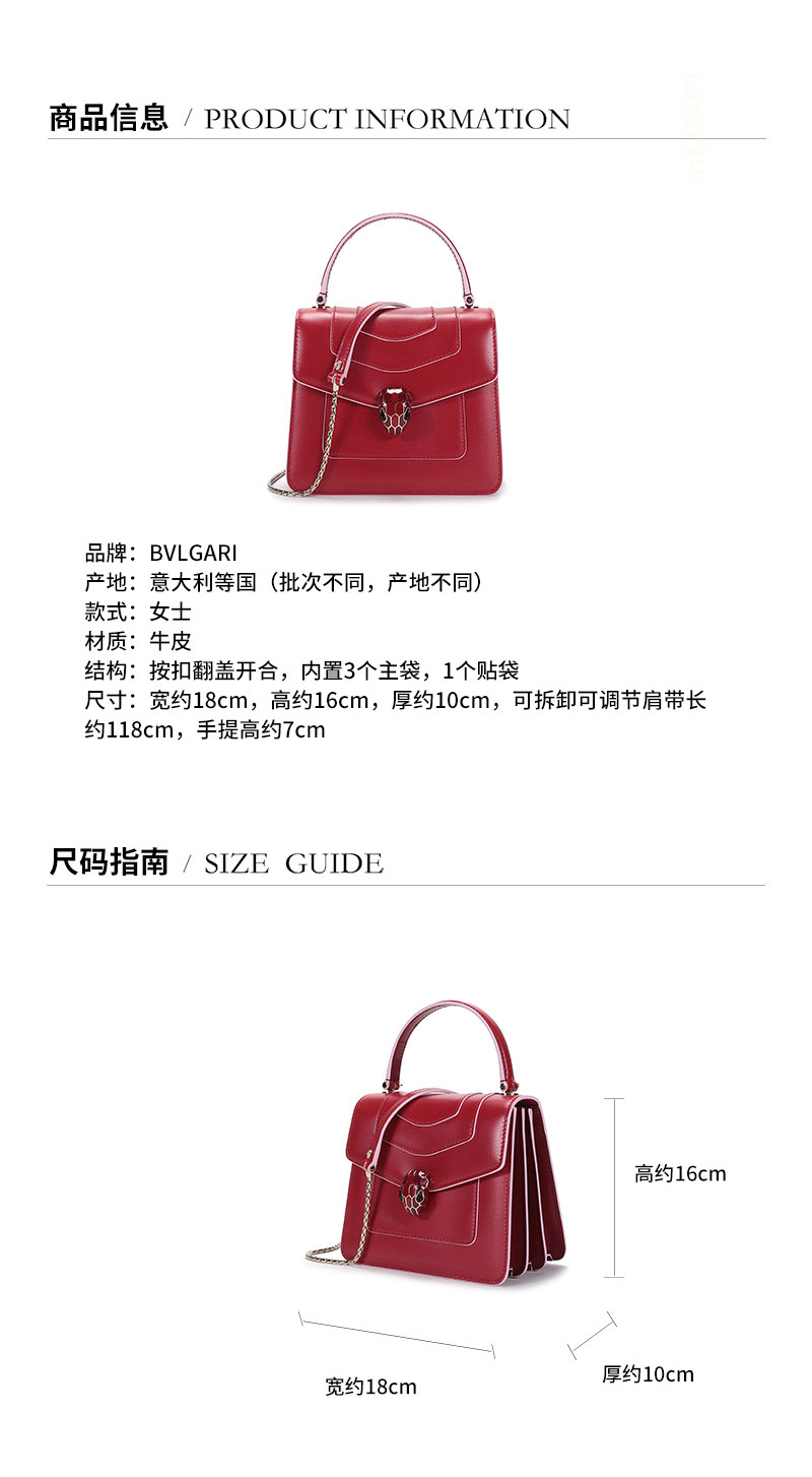 【国内现货】BVLGARI/宝格丽 2021款 女士SERPENTI FOREVER ACCESSORIES系列牛皮蛇头扣手提单肩斜挎包 289220