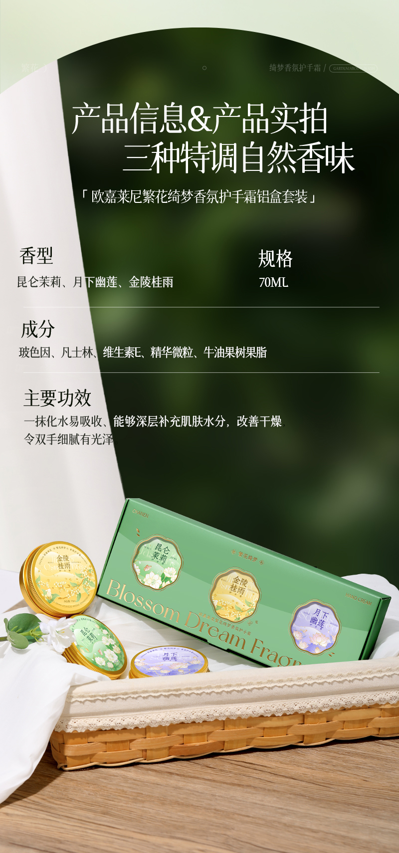 【东方古典香韵】欧嘉莱尼繁花绮梦香氛护手霜 植物油脂入霜 一抹水润保湿 清爽不油腻 礼盒装/3盒