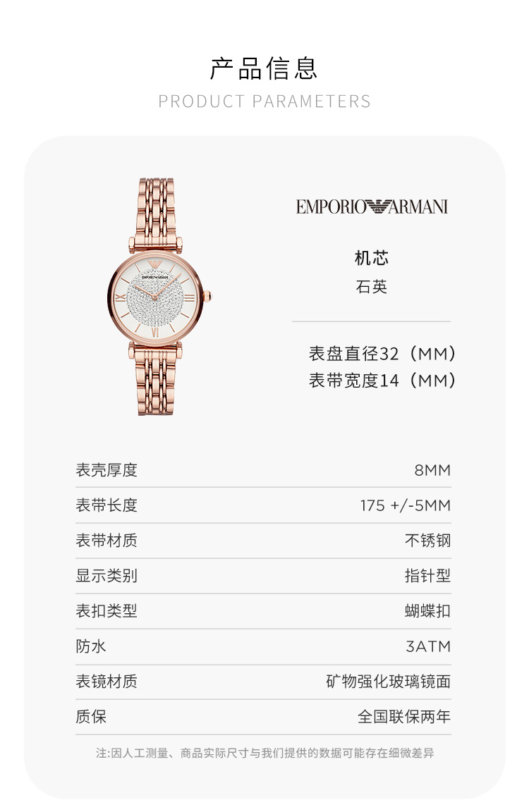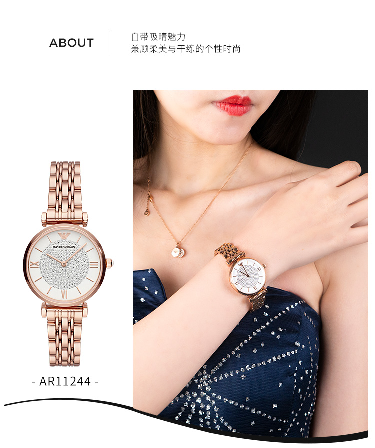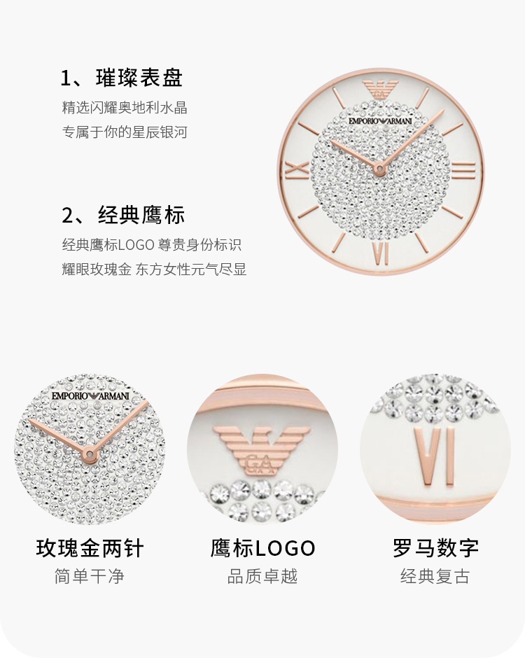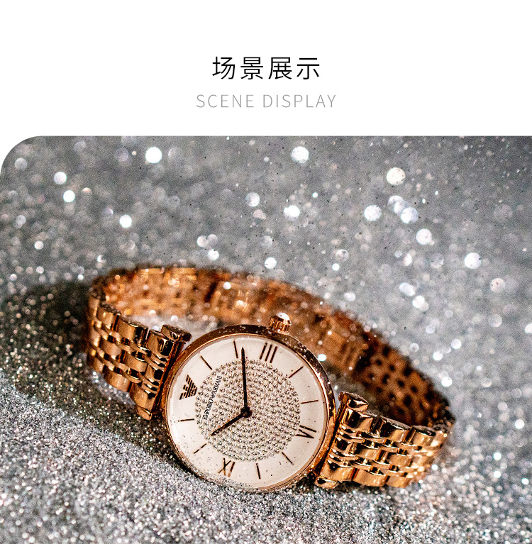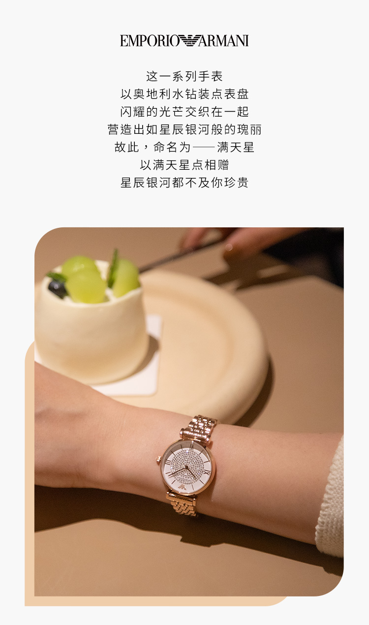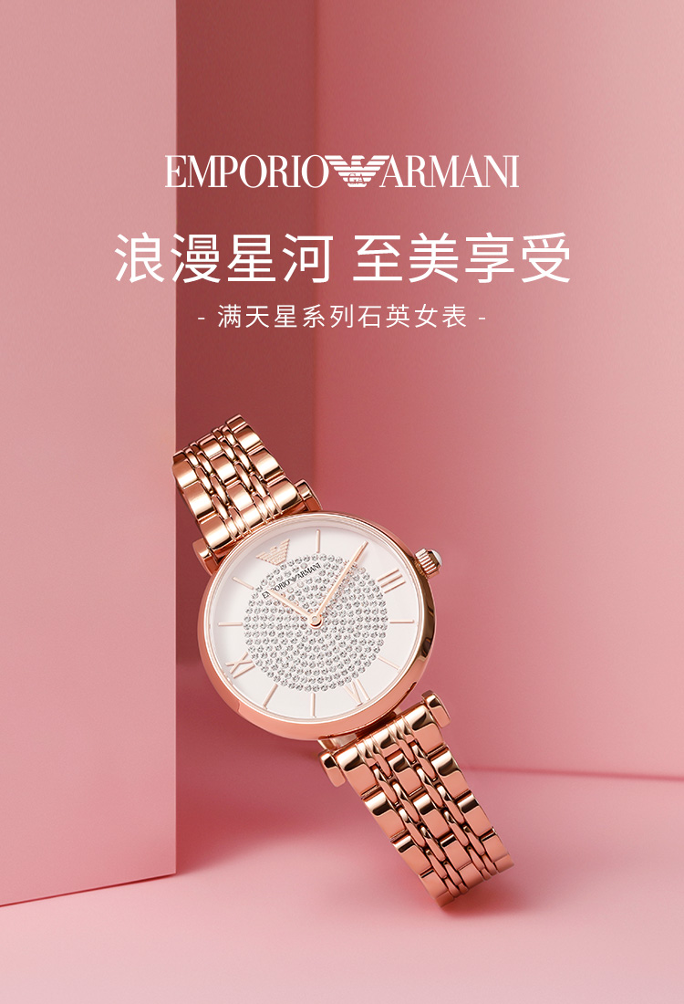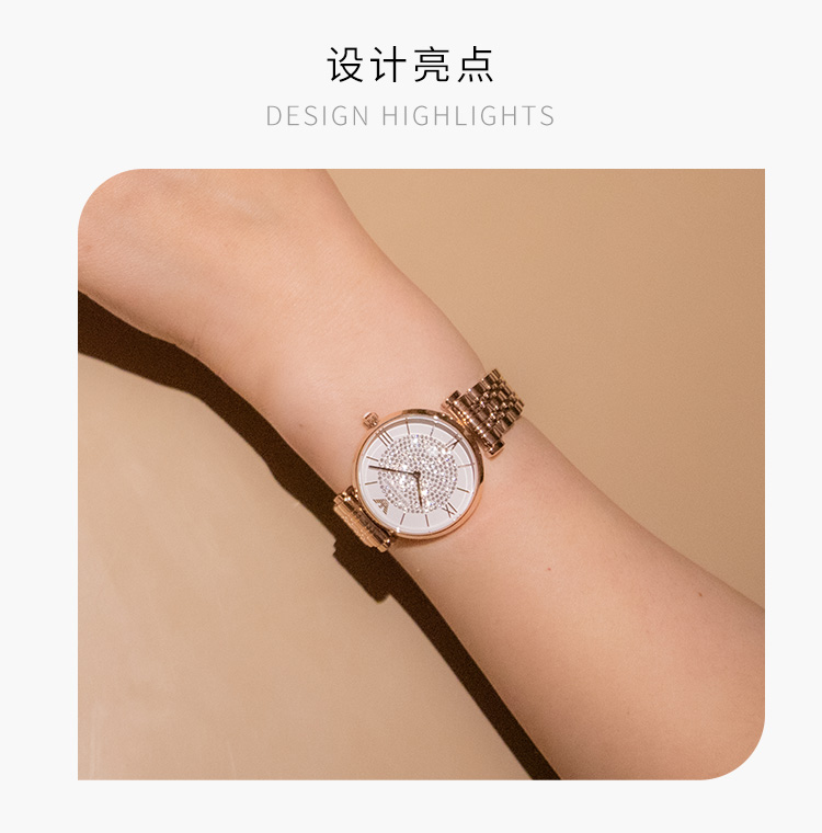 Emporio Armani/安普里奥阿玛尼 满天星手表 玫瑰金色钢制表带欧美表镶钻女士腕表 送女友 AR11244