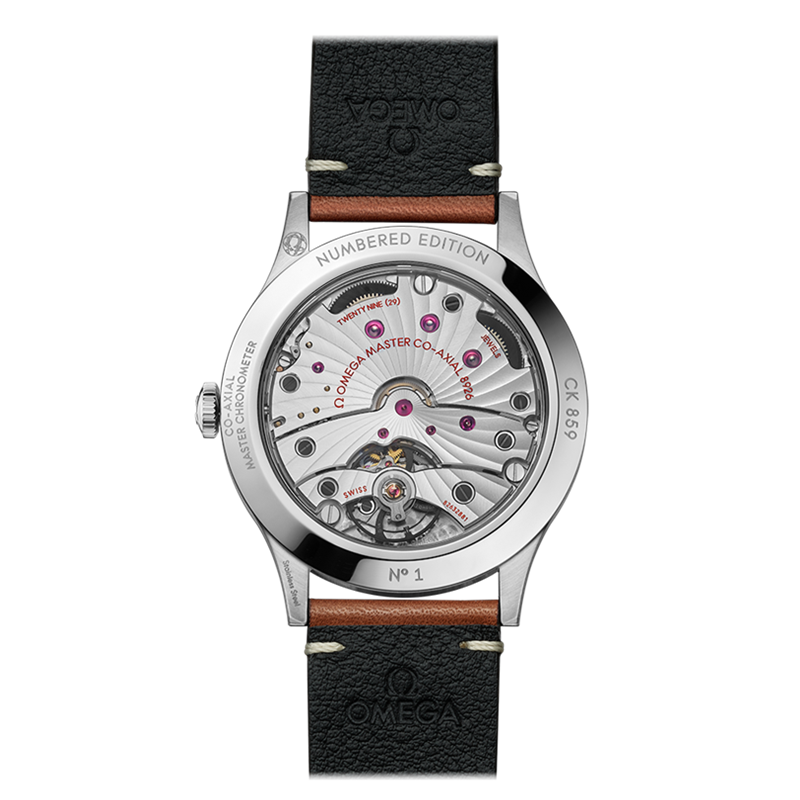 镜面材质 | 蓝宝石水晶玻璃 | 表盘 | 精钢表壳 表冠镌刻有复古风格的欧米茄标识。透过拱型蓝宝石玻璃表镜,可以欣赏到925银质表盘,深蓝色的品牌标识和刻度搭配蓝色指针,6点位设有小秒盘。 表背经抛光打磨,镌刻有“NUMBERED EDITION”(编号版)、“CO-AXIAL MASTER CHRONOMETER”(至臻天文台机芯)以及“CK 859”等字样。其中,编号“CK”和“859”在历史表款中分别代表表壳的精钢材质和表壳形状。 |