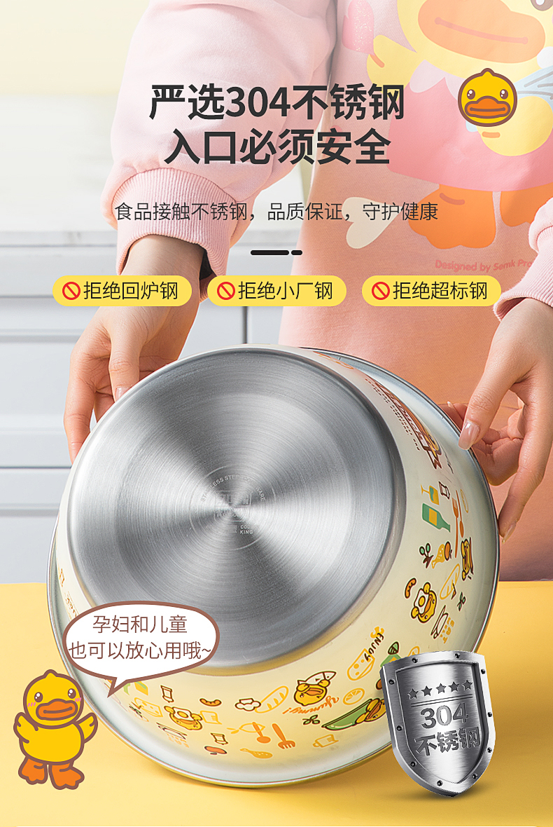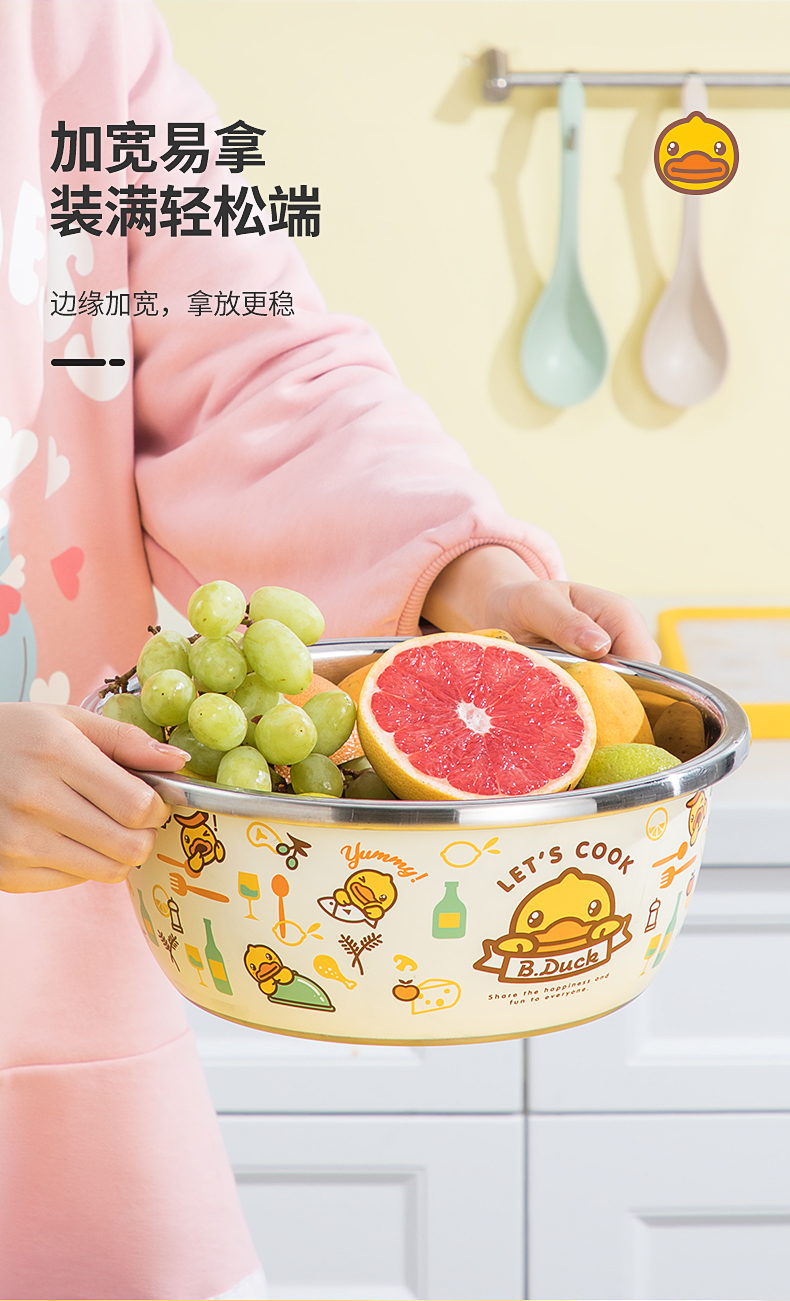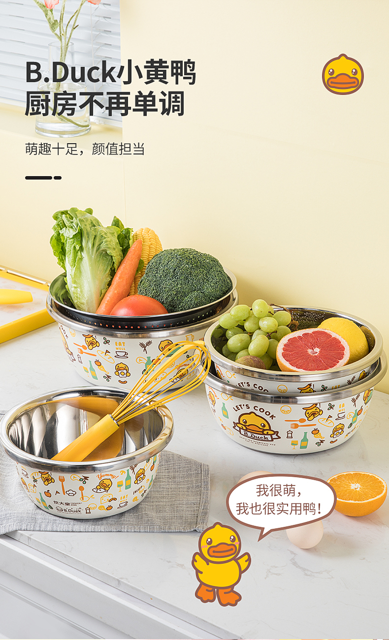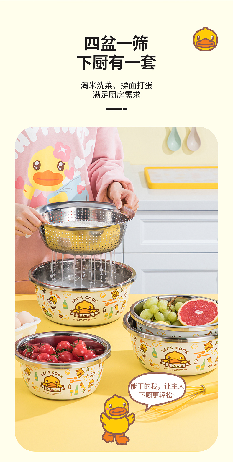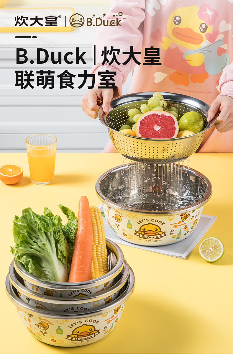 炊大皇盆筛 小黄鸭联名多用不锈钢盆筛加厚家用调料盆洗菜盆米筛5件套TP05XHY
