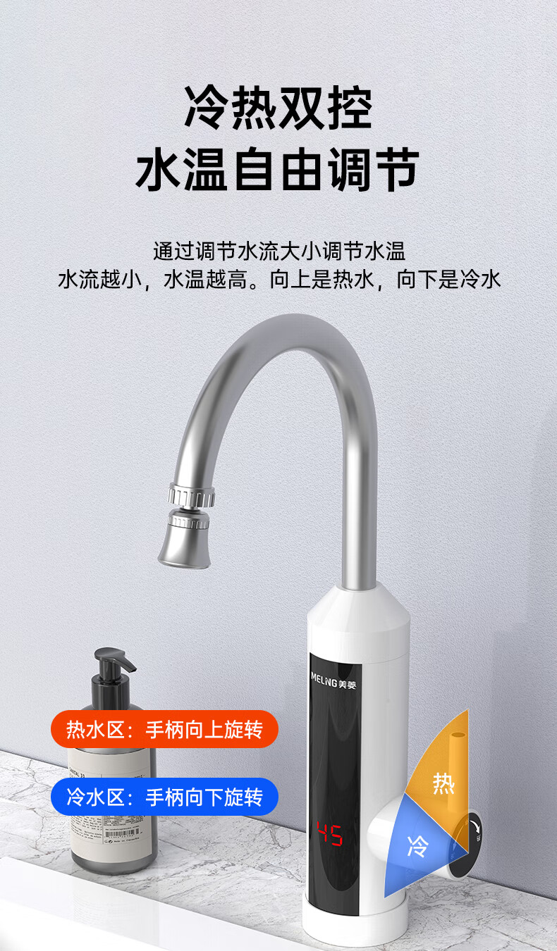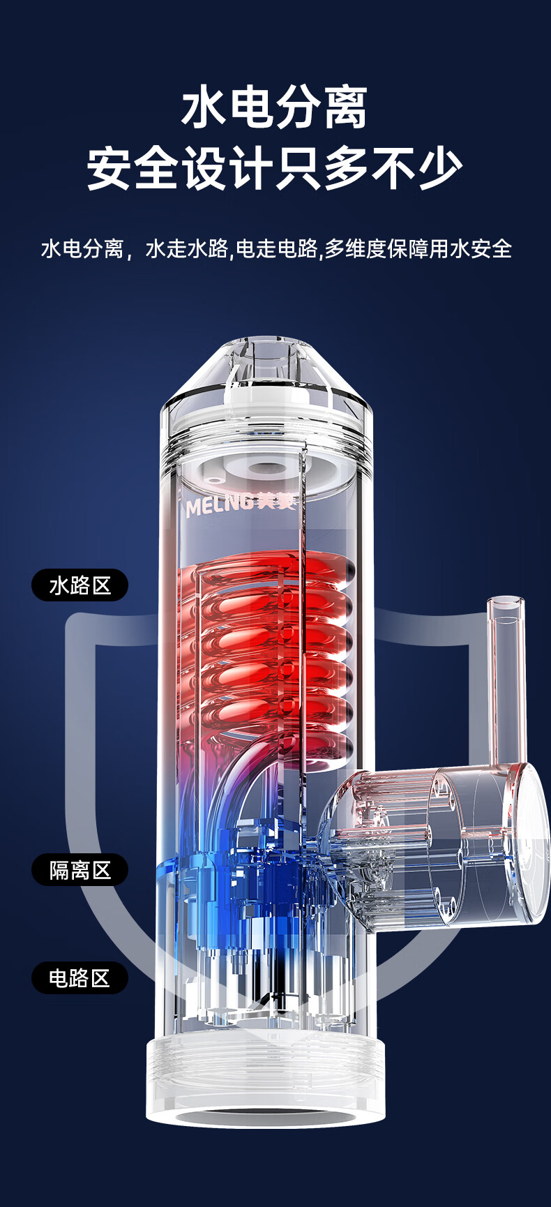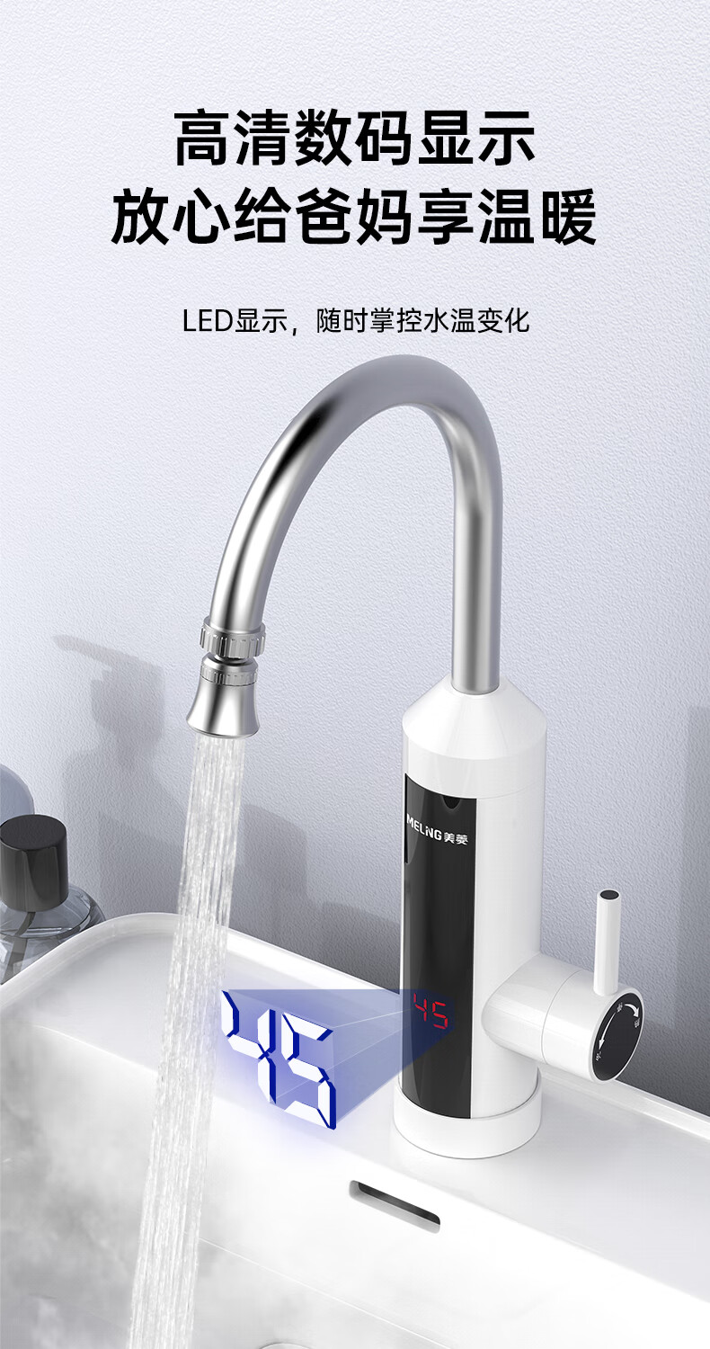 美菱(MeiLing)电热水龙头快速热水龙头电热水器冷热两用电加热水龙头厨房卫生间小厨宝 雪山白指示灯款安全插头进水软管