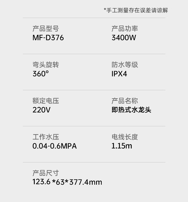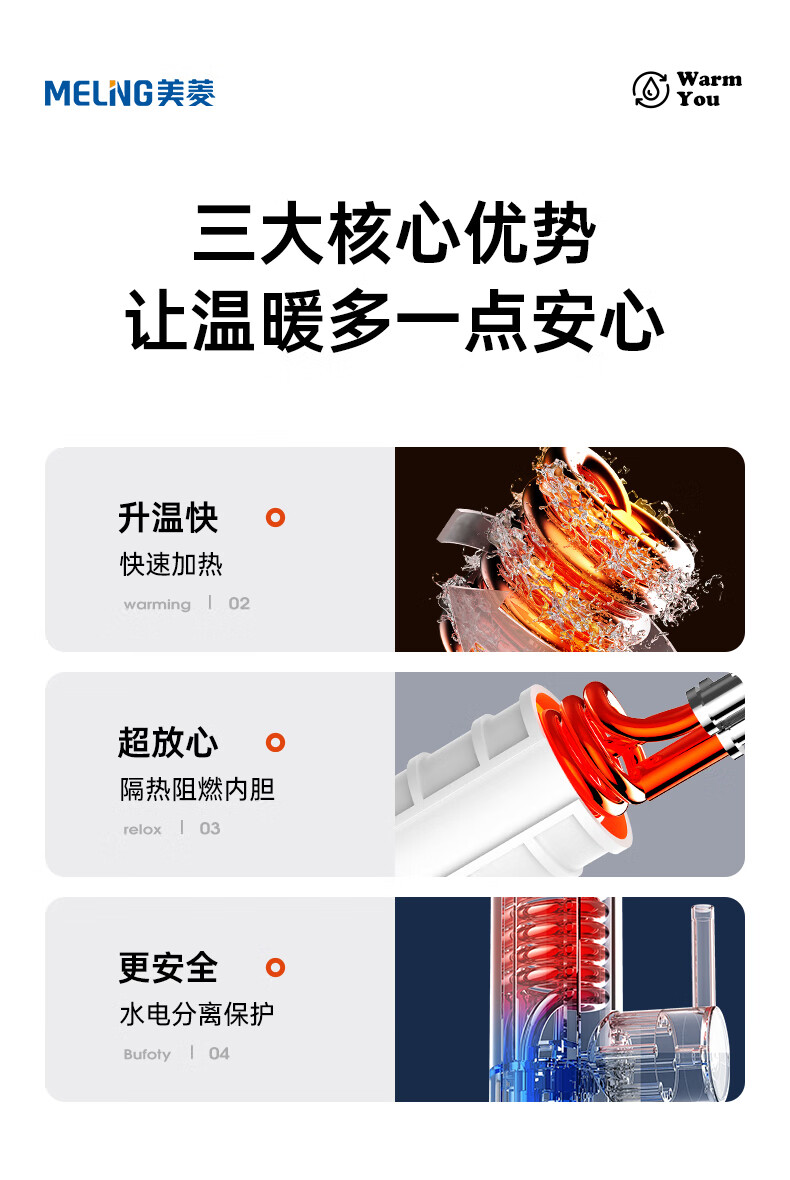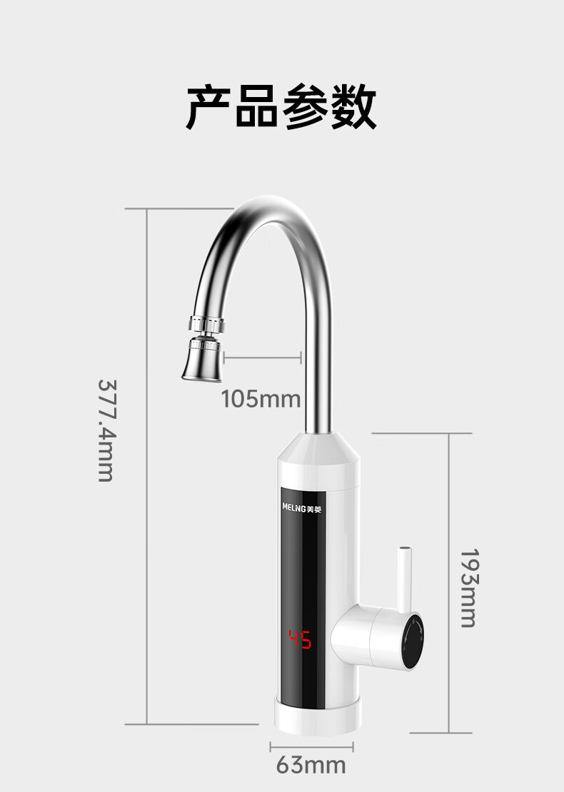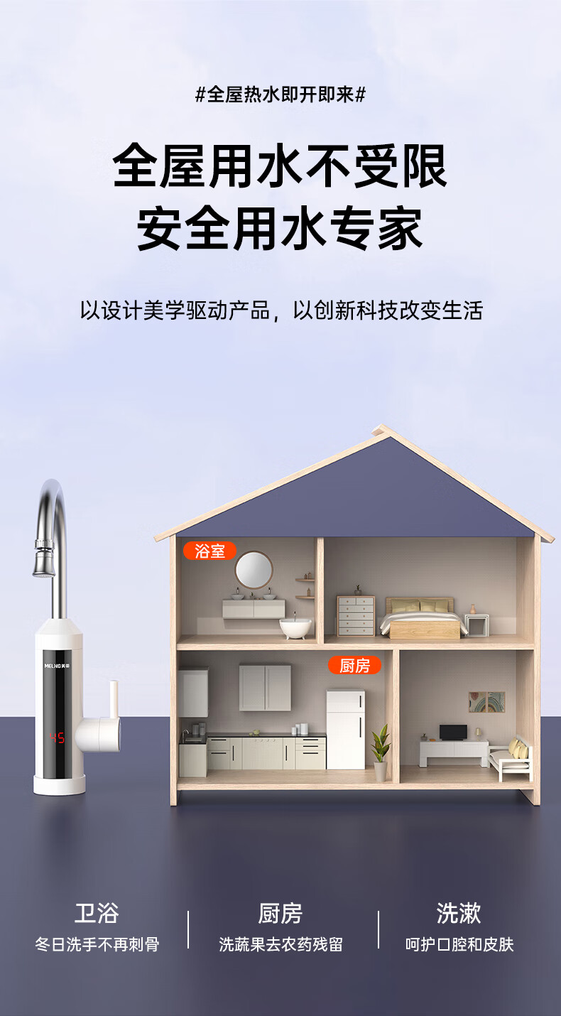 美菱(MeiLing)电热水龙头快速热水龙头电热水器冷热两用电加热水龙头厨房卫生间小厨宝 雪山白指示灯款安全插头进水软管
