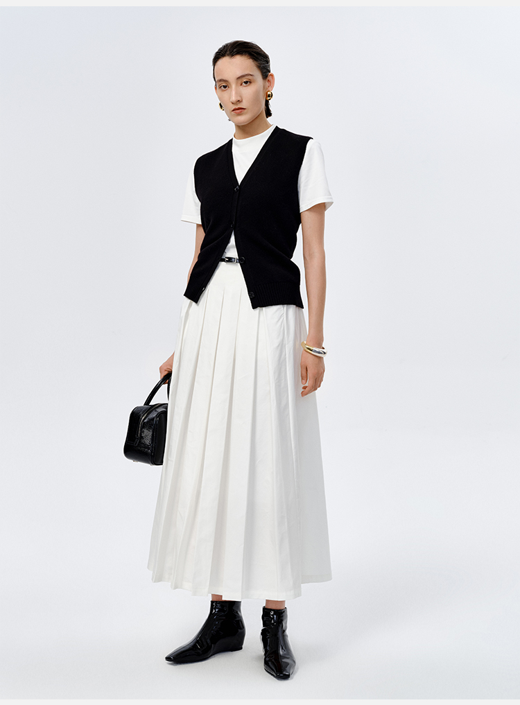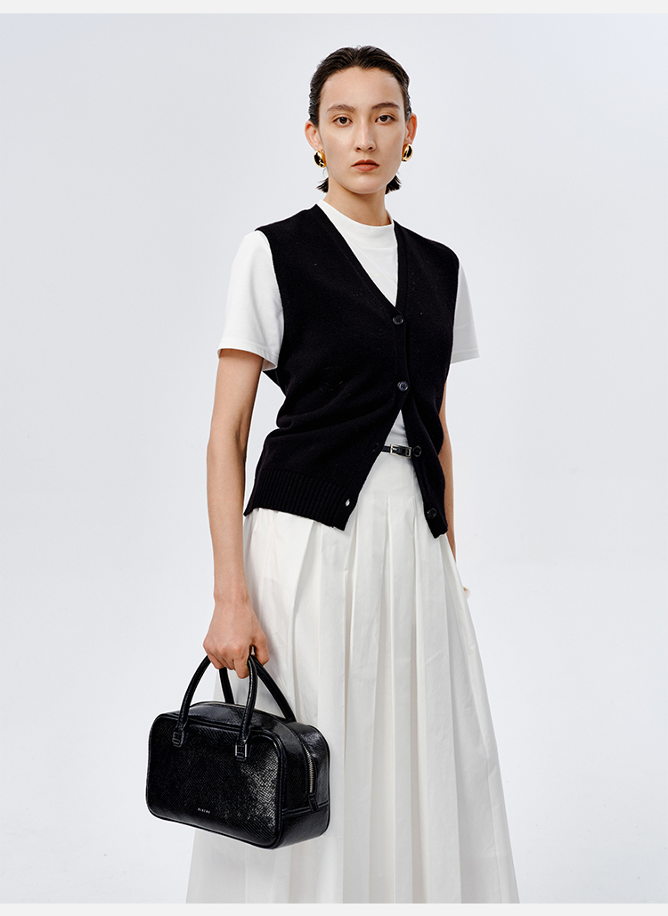 HIDEMI 美利奴羊毛V领纽扣廓形针织背心 黑色/牛油果绿