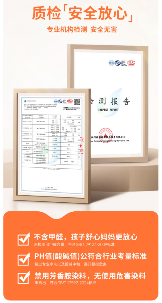 A类家居服 无甲醛不含荧光剂 大家都知道给小孩子选衣服最好选A类标准的 因为A类产品对甲醛含量,着色度等要求较高 检测报告奉上给大家