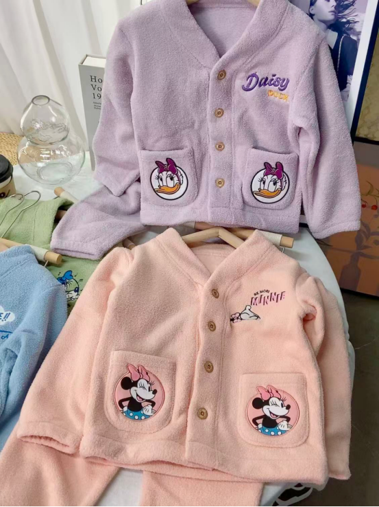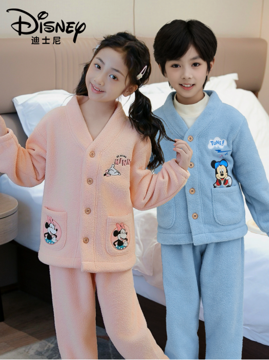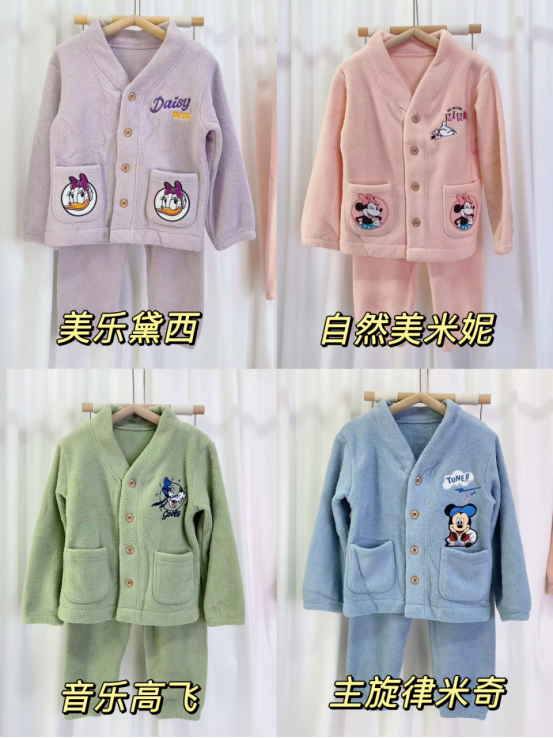母婴A类标准❗️撸猫感❗️【迪士尼disney泡芙绵儿童居家服套装】 秋冬降温保暖神器🔥萌趣又洋气~毛绒绒的舒服炸了❗ 宽松版型男女宝都可穿,一起暖fufu过冬天❗ ✅高级泡芙绒,亲肤不掉毛 ✅松紧袖口裤脚,更防风保暖 ✅4款花色可选,可穿100-160码