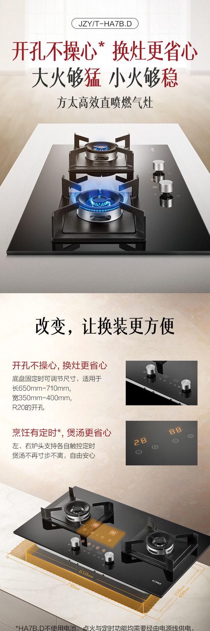 方太灶(11794) 开孔不操心* 换灶更省心 JZY/T-HA7B.D 高效直喷 轻松换装 烹饪定时