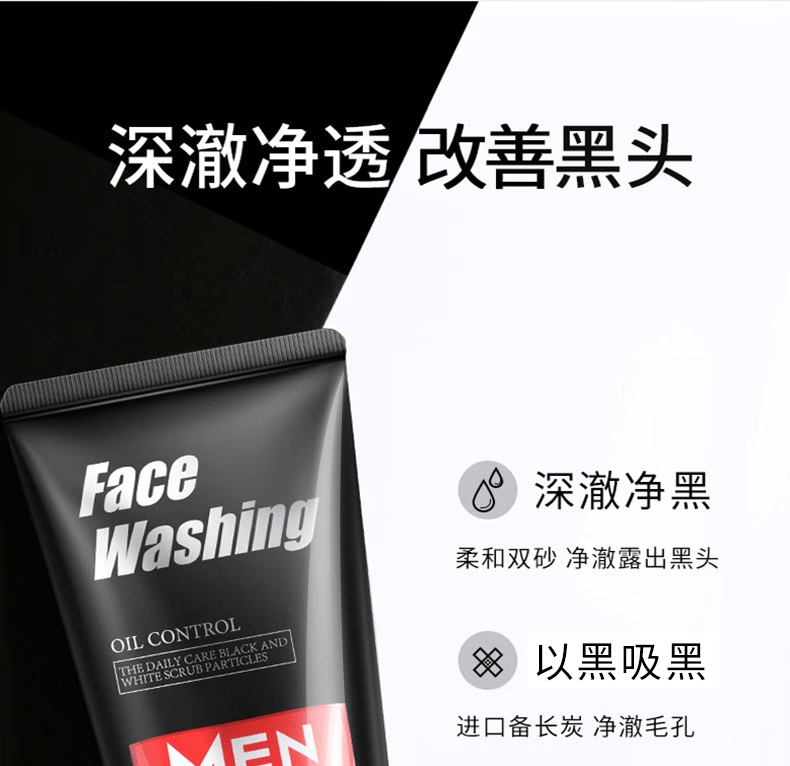 花印 男士控油调理洁面乳(黑白磨砂柔珠)150g