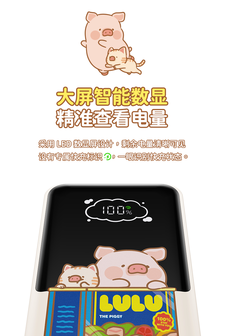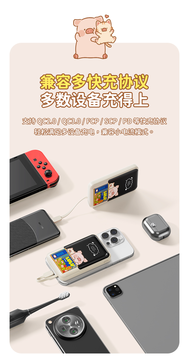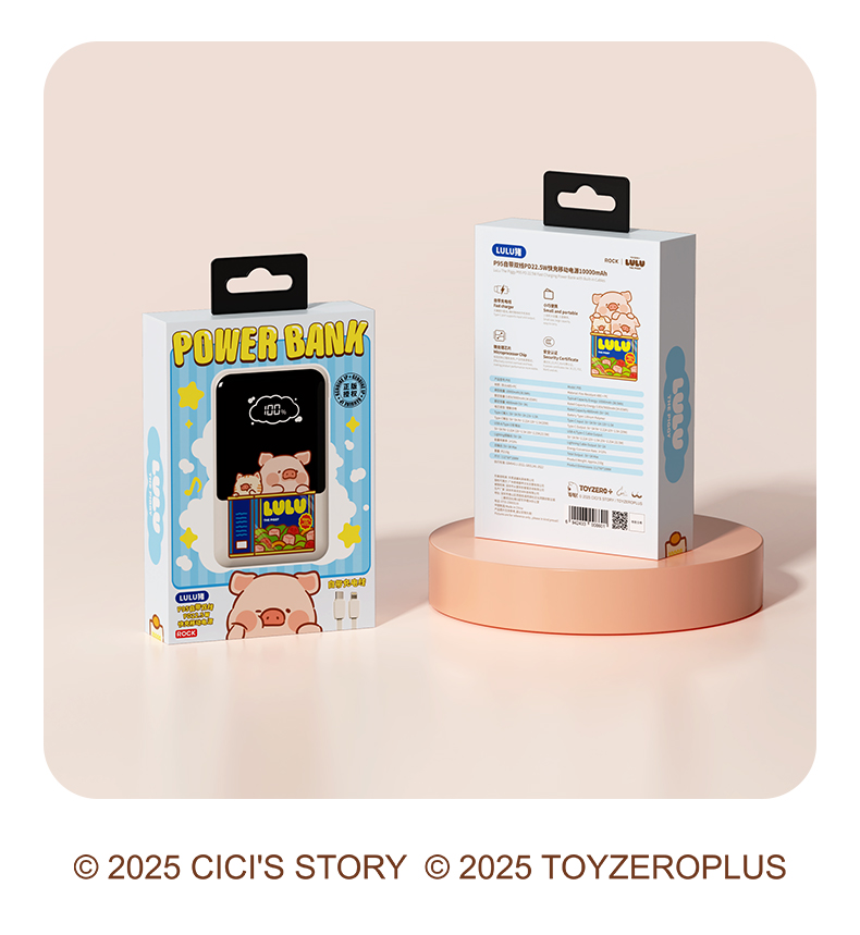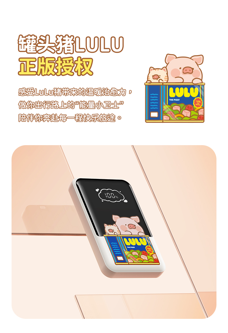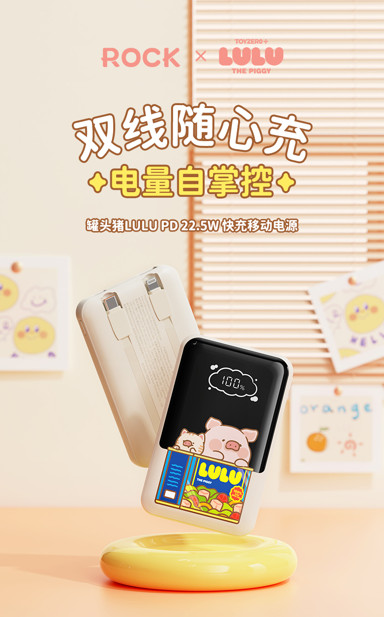 ROCK 罐头猪LULU P95自带双线PD 22.5W快充移动电源10000mah