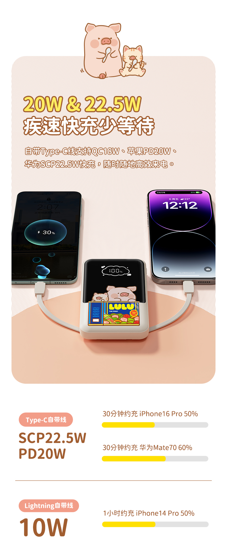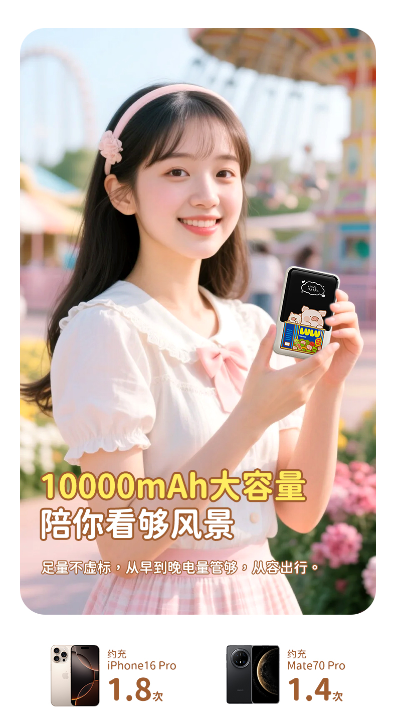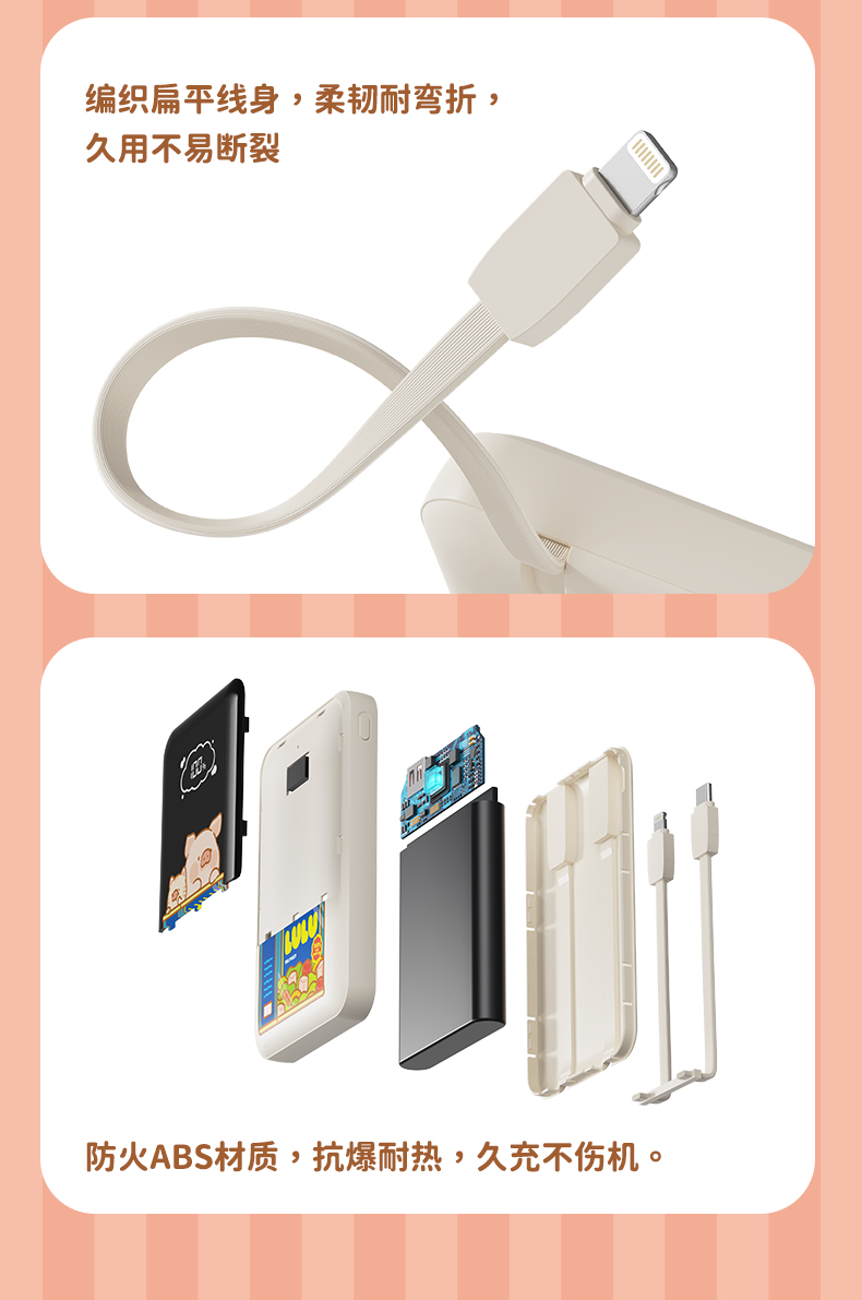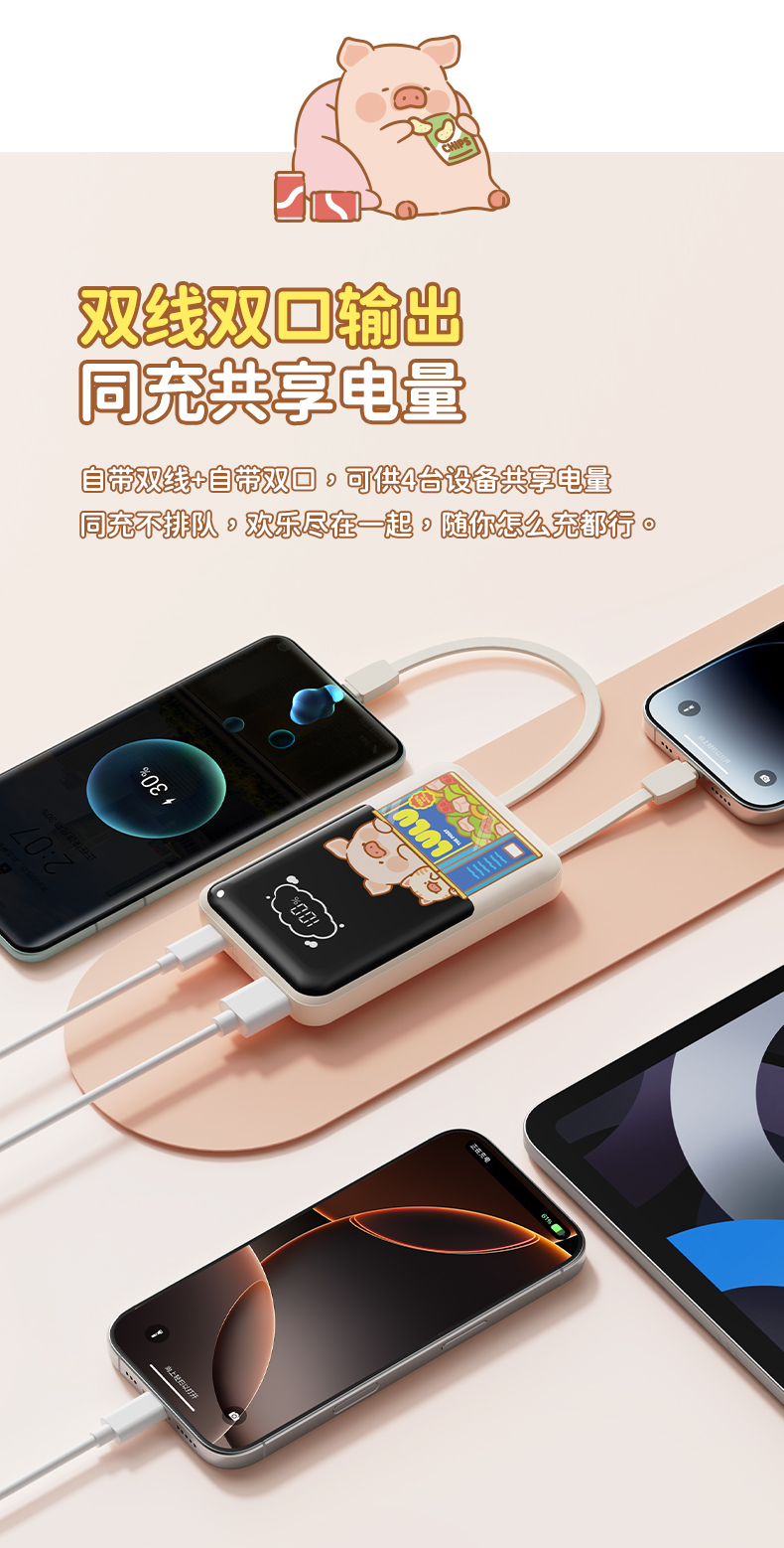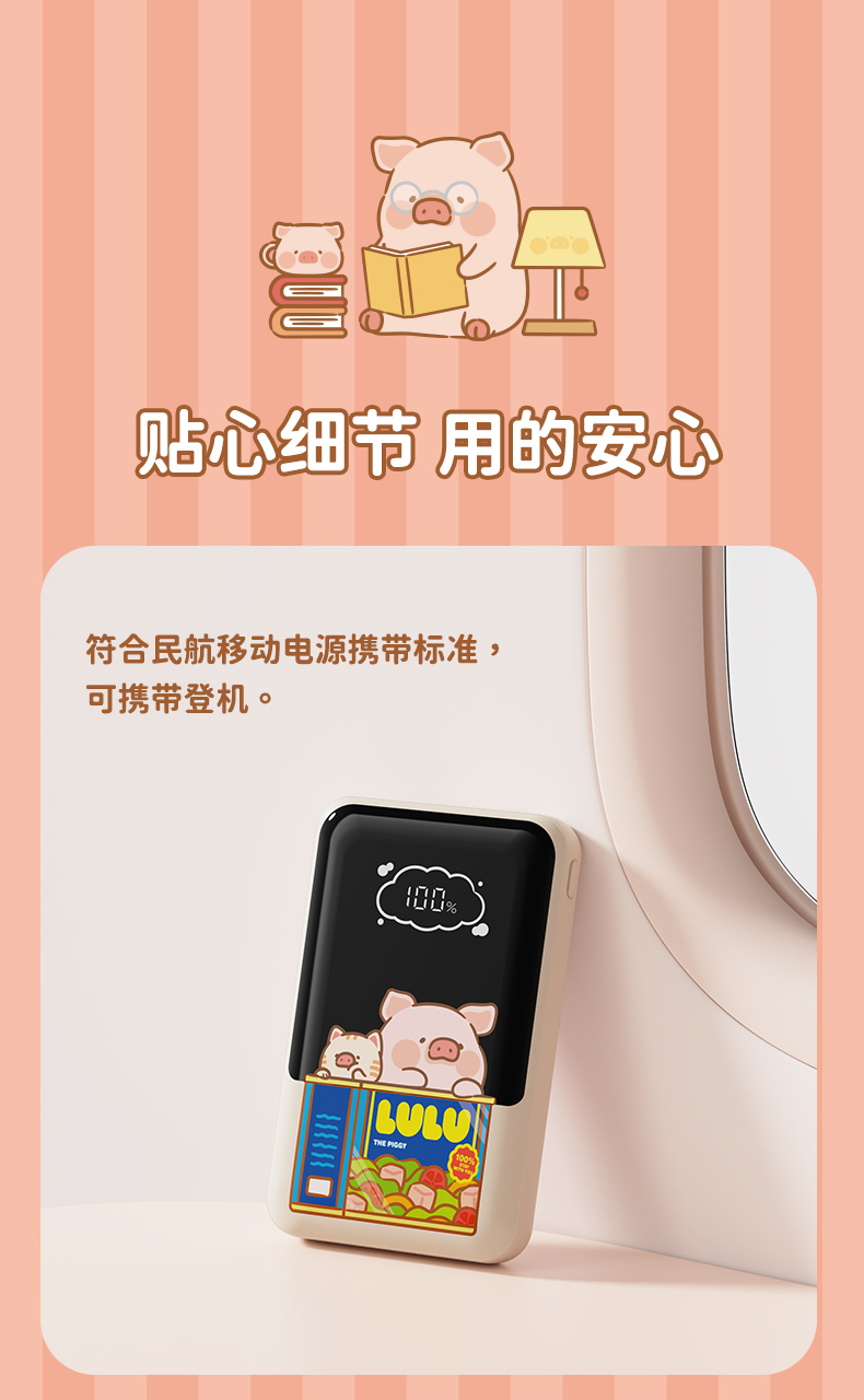 ROCK 罐头猪LULU P95自带双线PD 22.5W快充移动电源10000mah