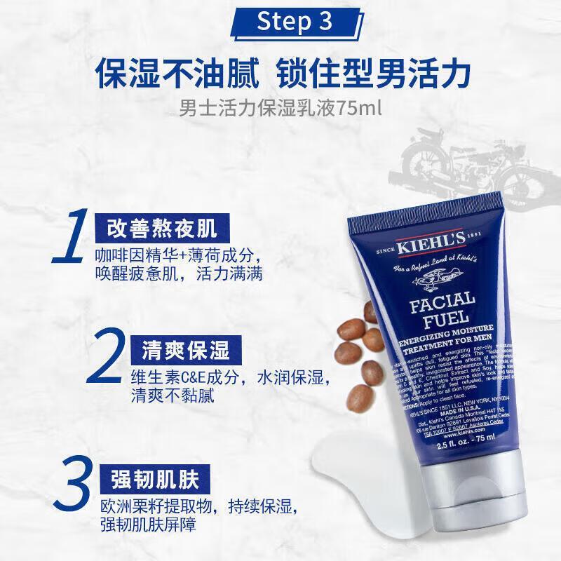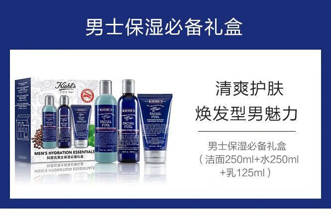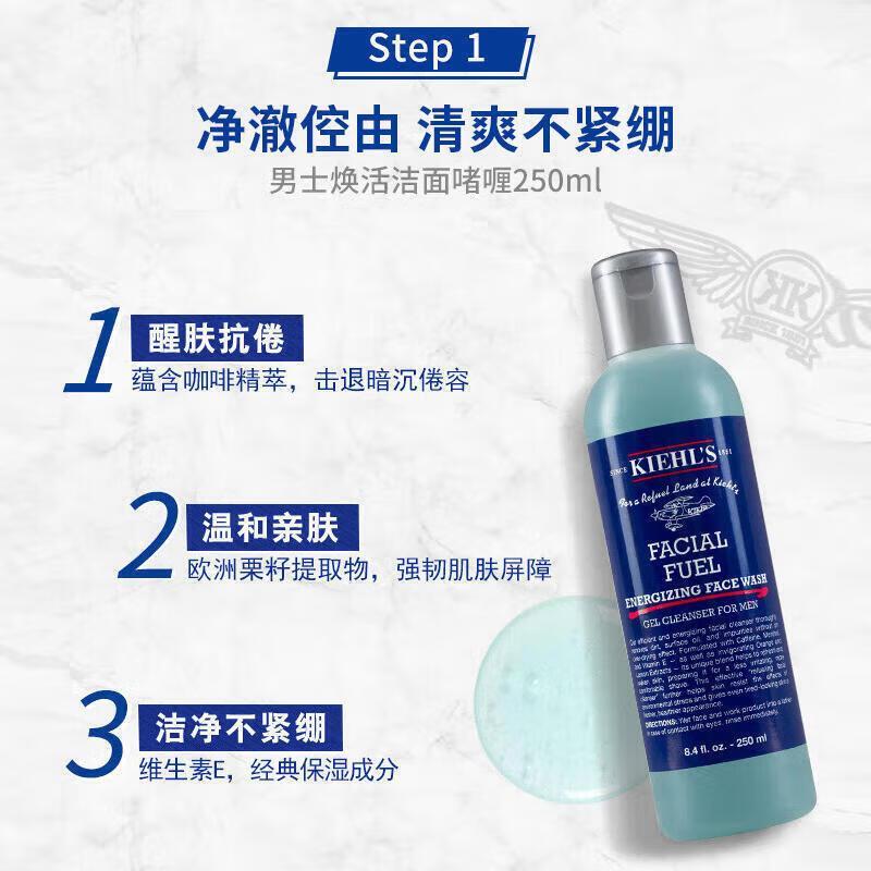 Kiehl's/科颜氏 男士保湿三件套 洁面啫喱250ml+爽肤水250ml+保湿乳液125ml