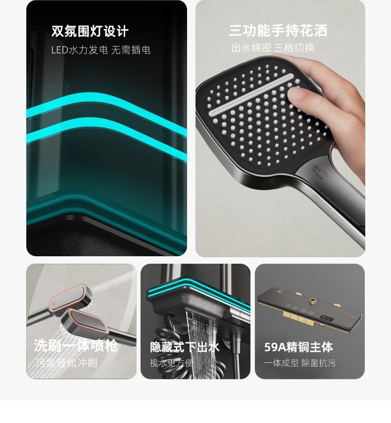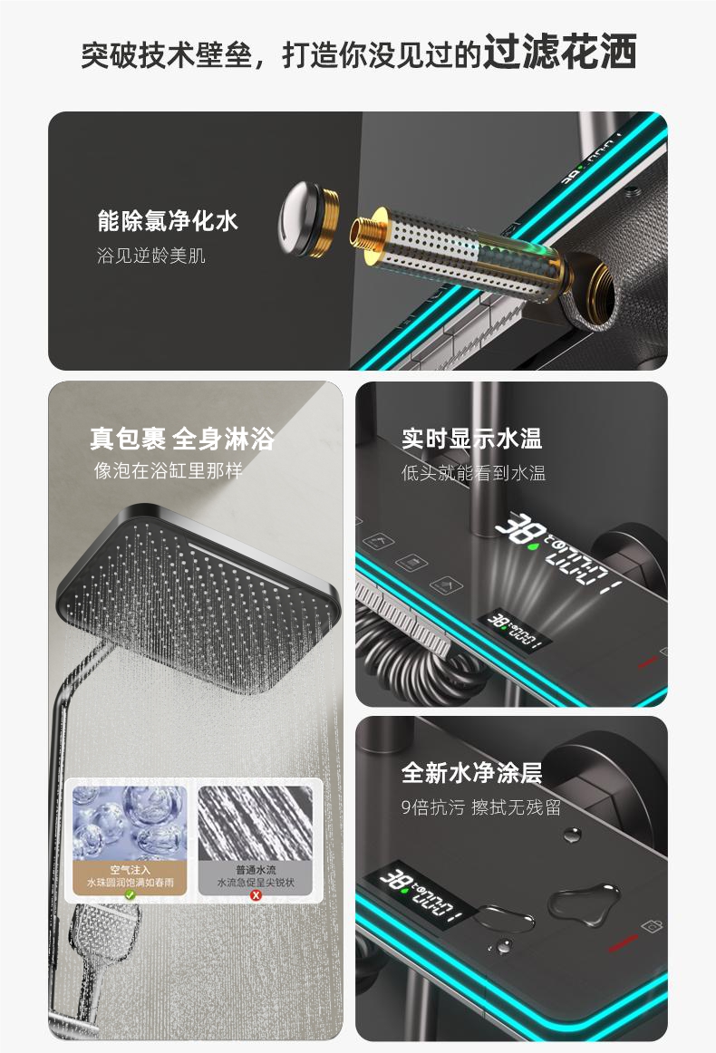 8066德伦特数显氛围灯花洒-雅白【铜主体】