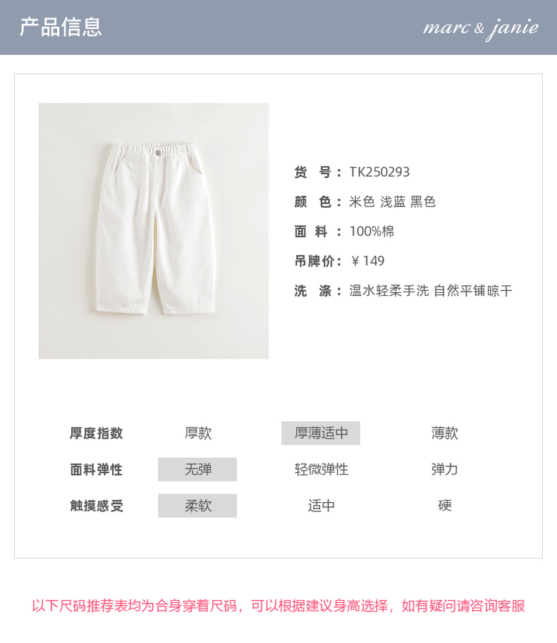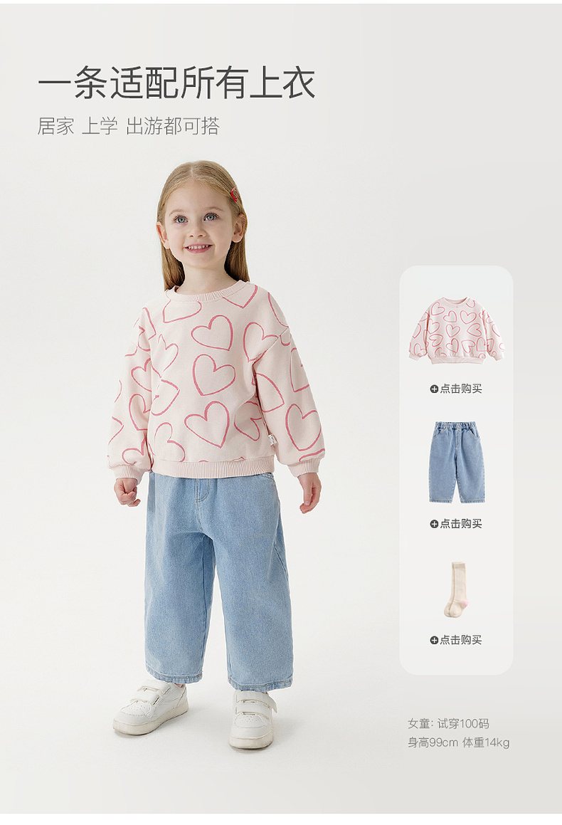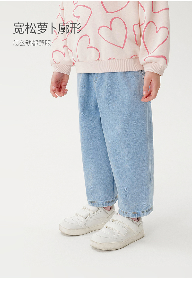 马克珍妮女童简约百搭软牛仔裤萝卜裤宝宝纯棉裤子春装新款250293