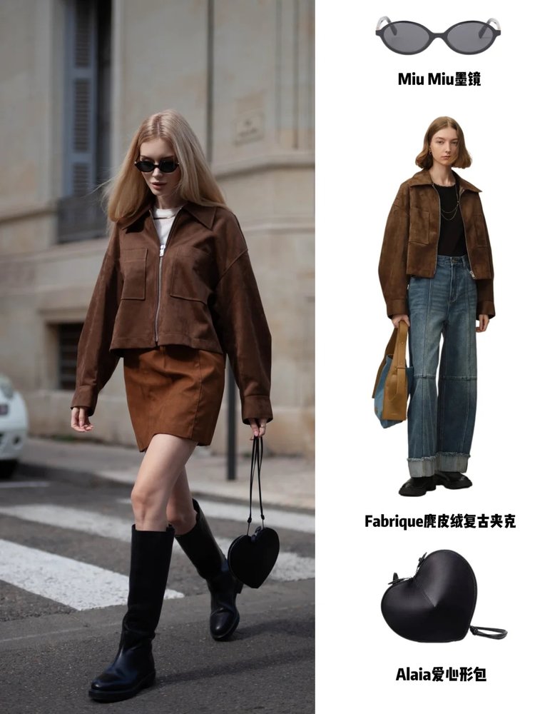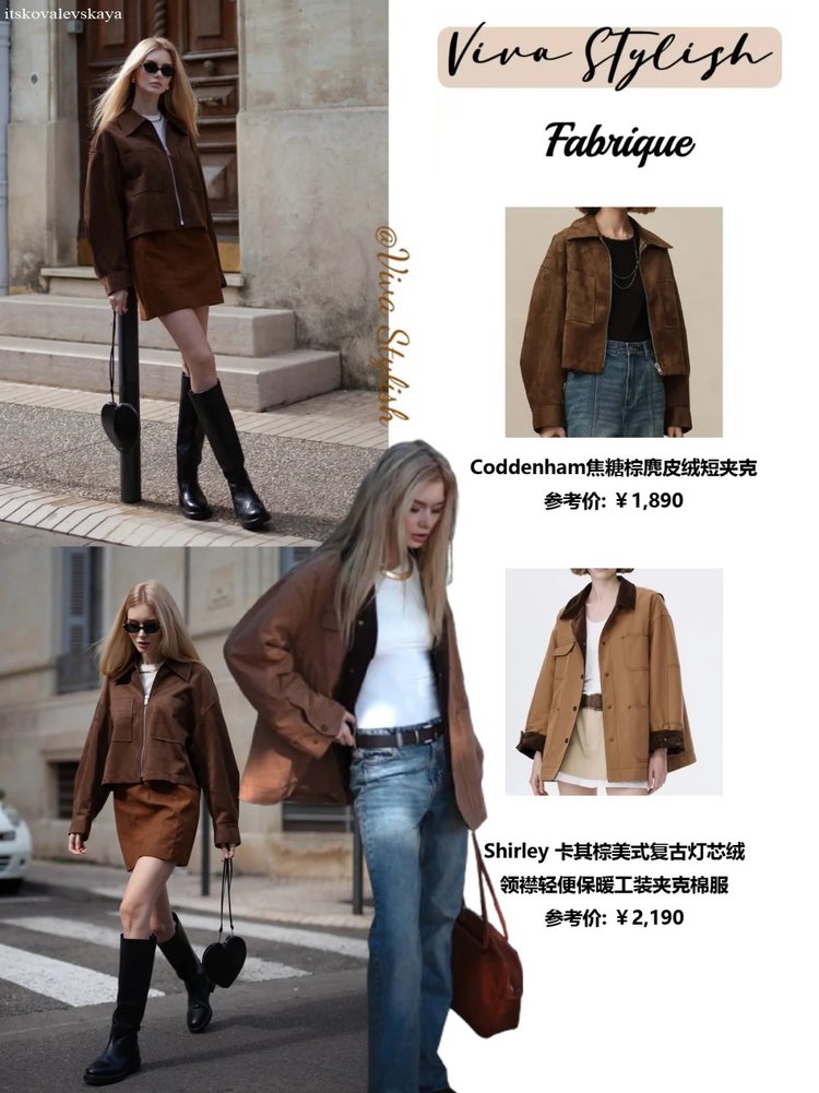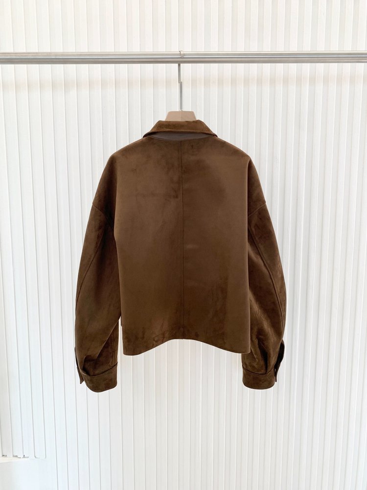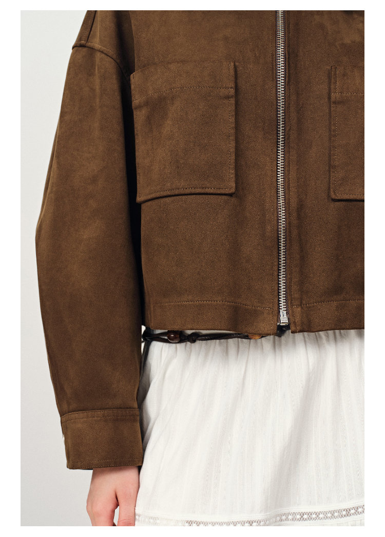 fabrique浓郁焦糖棕色仿麂皮绒短款夹克