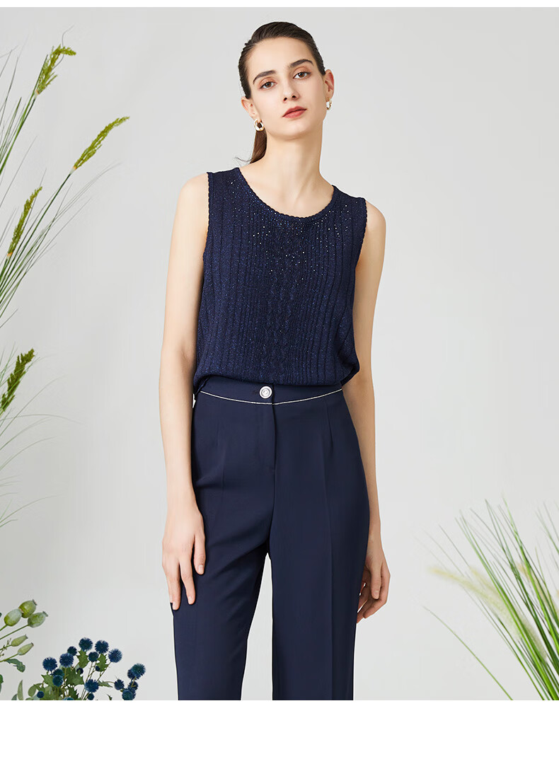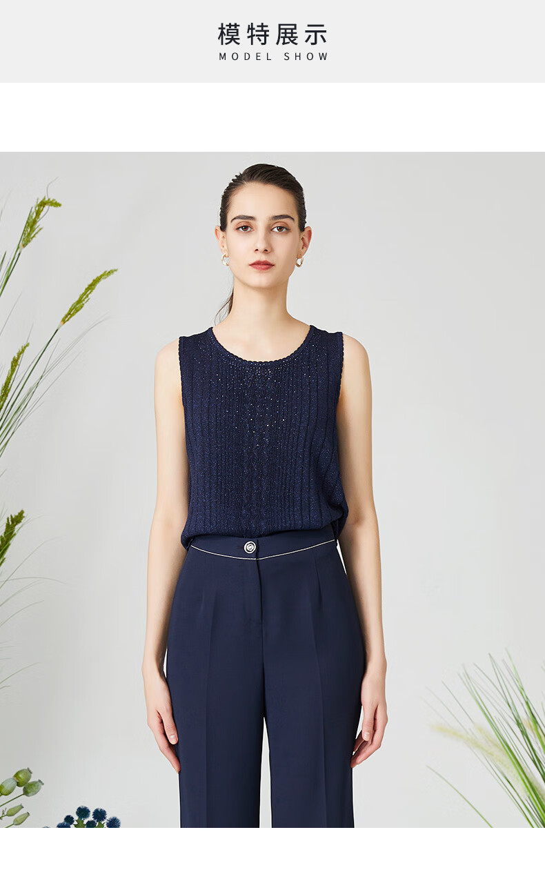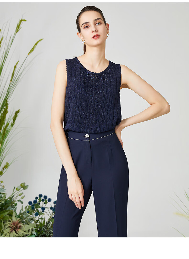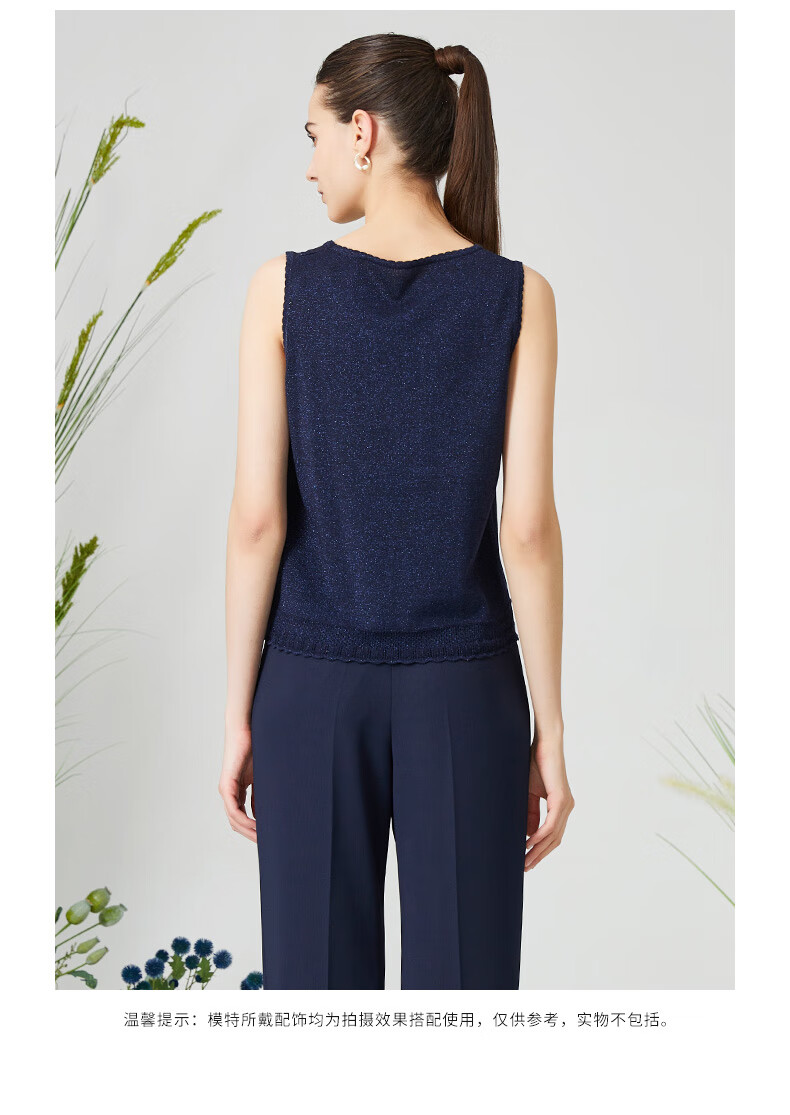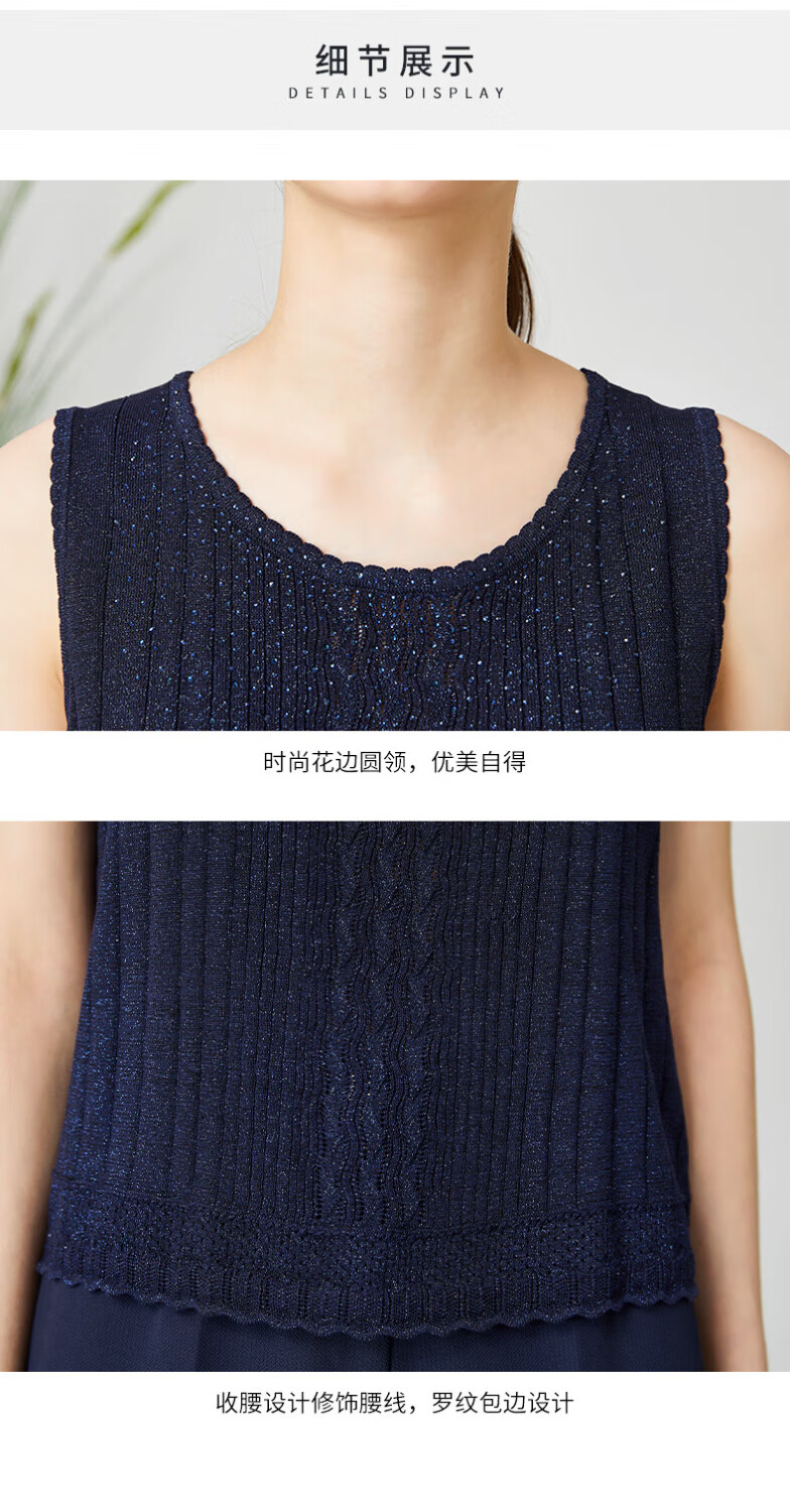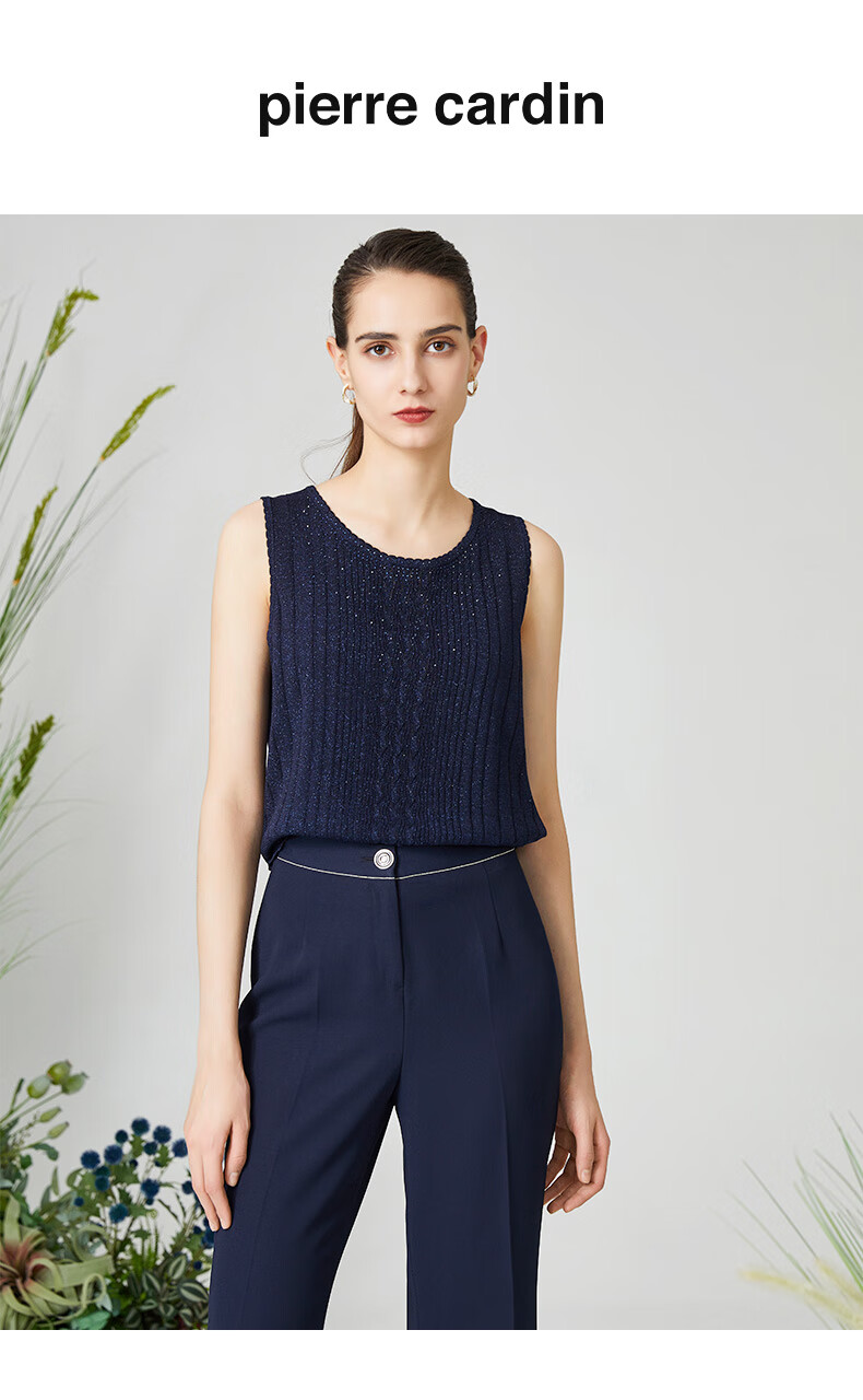 皮尔卡丹女装针织衫提花无袖圆领通勤百搭打底衫内搭P3199K3161N0