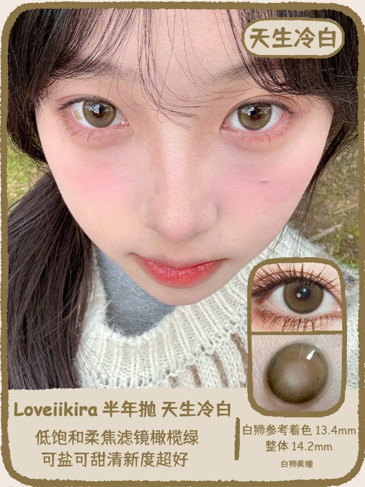 Loveiikira旗下 男友视角&天生冷白&奶油底妆|14.2mm白狮参考着色中等直径|半年抛 2片