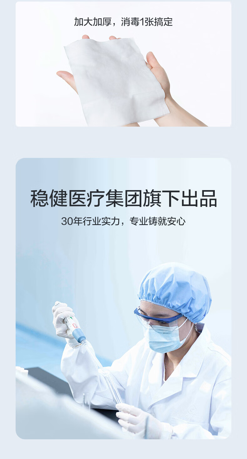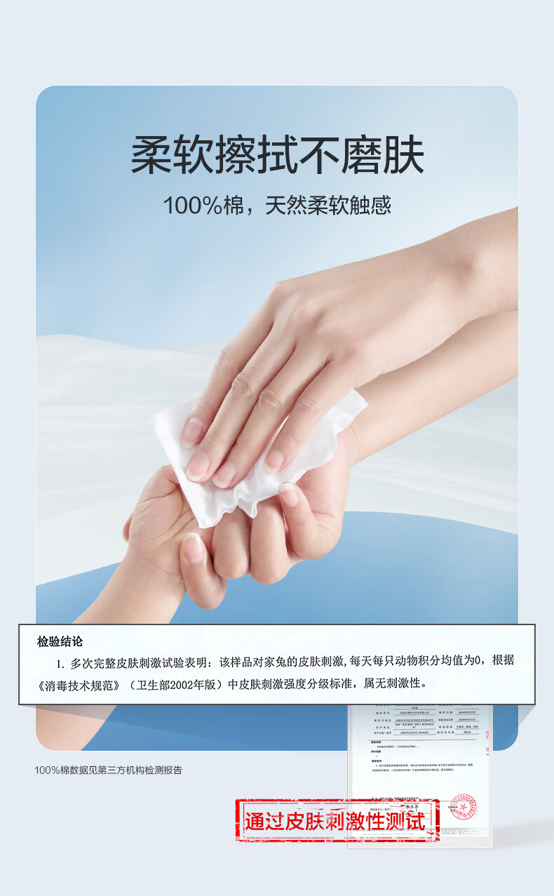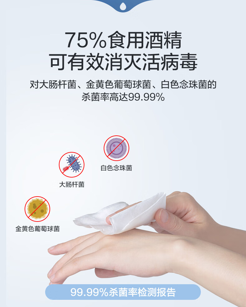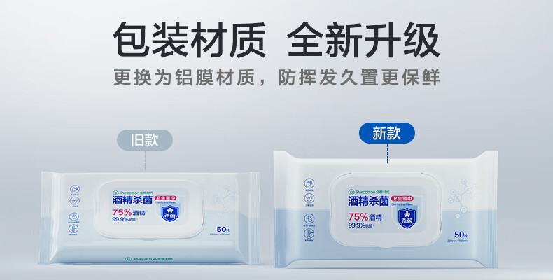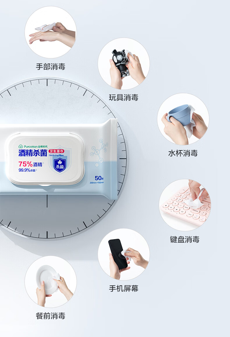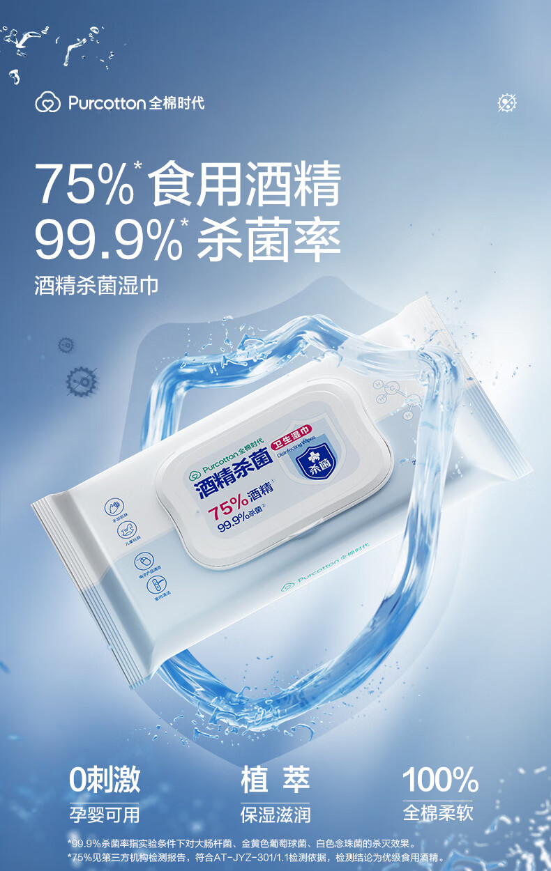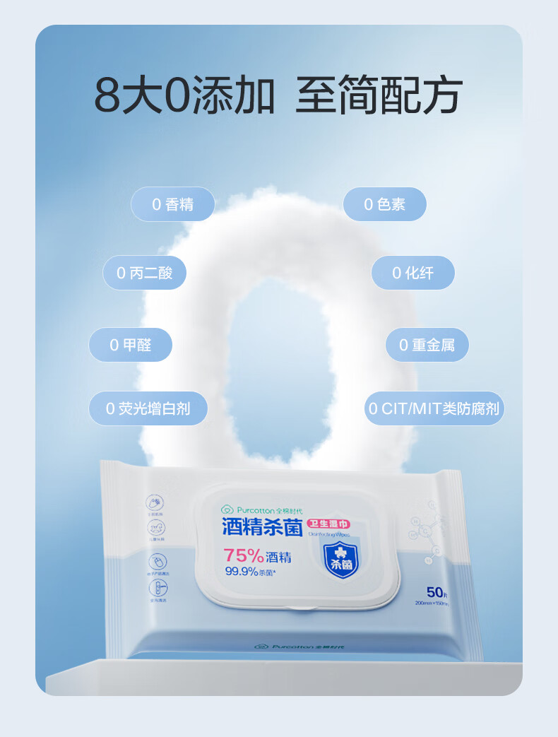 全棉时代 酒精湿巾75%酒精杀菌卫生棉片一次性消毒湿纸巾家庭外出大包实惠装15*20cm50片/袋