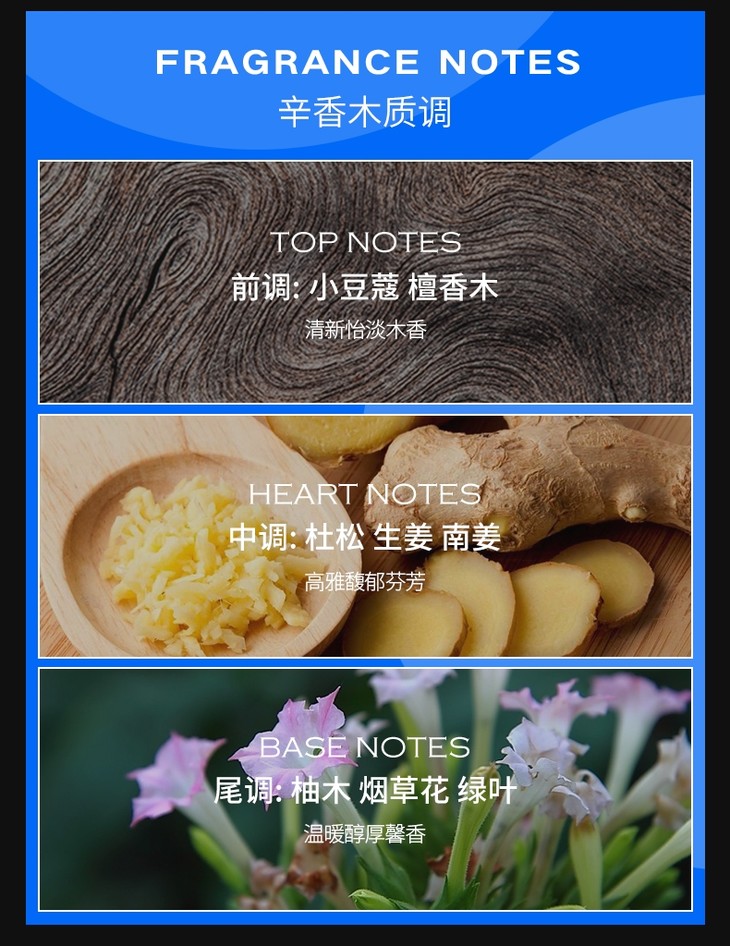 BVLGARI/宝格丽 蓝茶男士 很男人前调檀中调生姜尾调烟草花