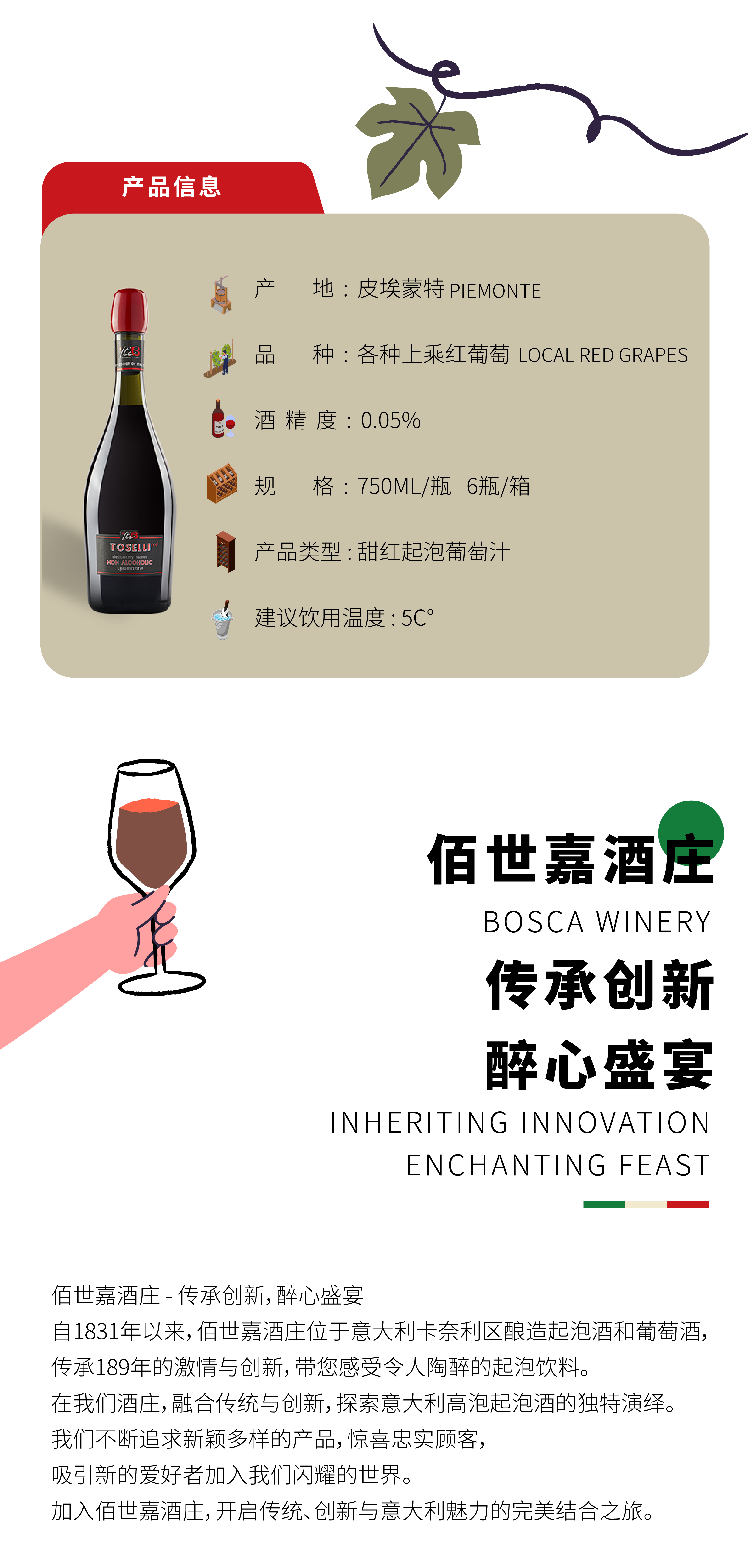 【无醇微甜】红甜型起泡桃丝丽红葡萄酒0.5%vol 750ml无酒精佰世嘉酒庄