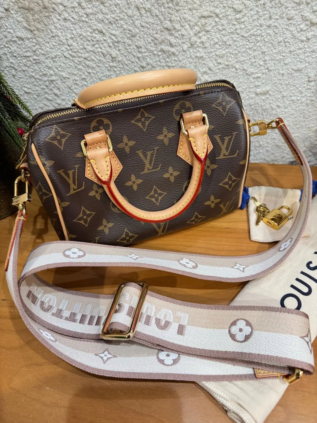 正品二手 Lv sp20 老花 奶茶色肩带 斜挎包🥰 97新 20×13 配件:肩带 钥匙 锁 防尘袋。上身超好看