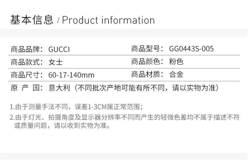 GUCCI/古驰 女士眼镜 粉色 太阳镜GG0443S-005JPY带授权招加盟代理