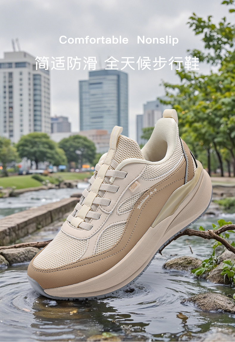 百宝新款女鞋防滑春夏季减震跑步女士厚底休闲跑鞋轻便软底运动鞋
