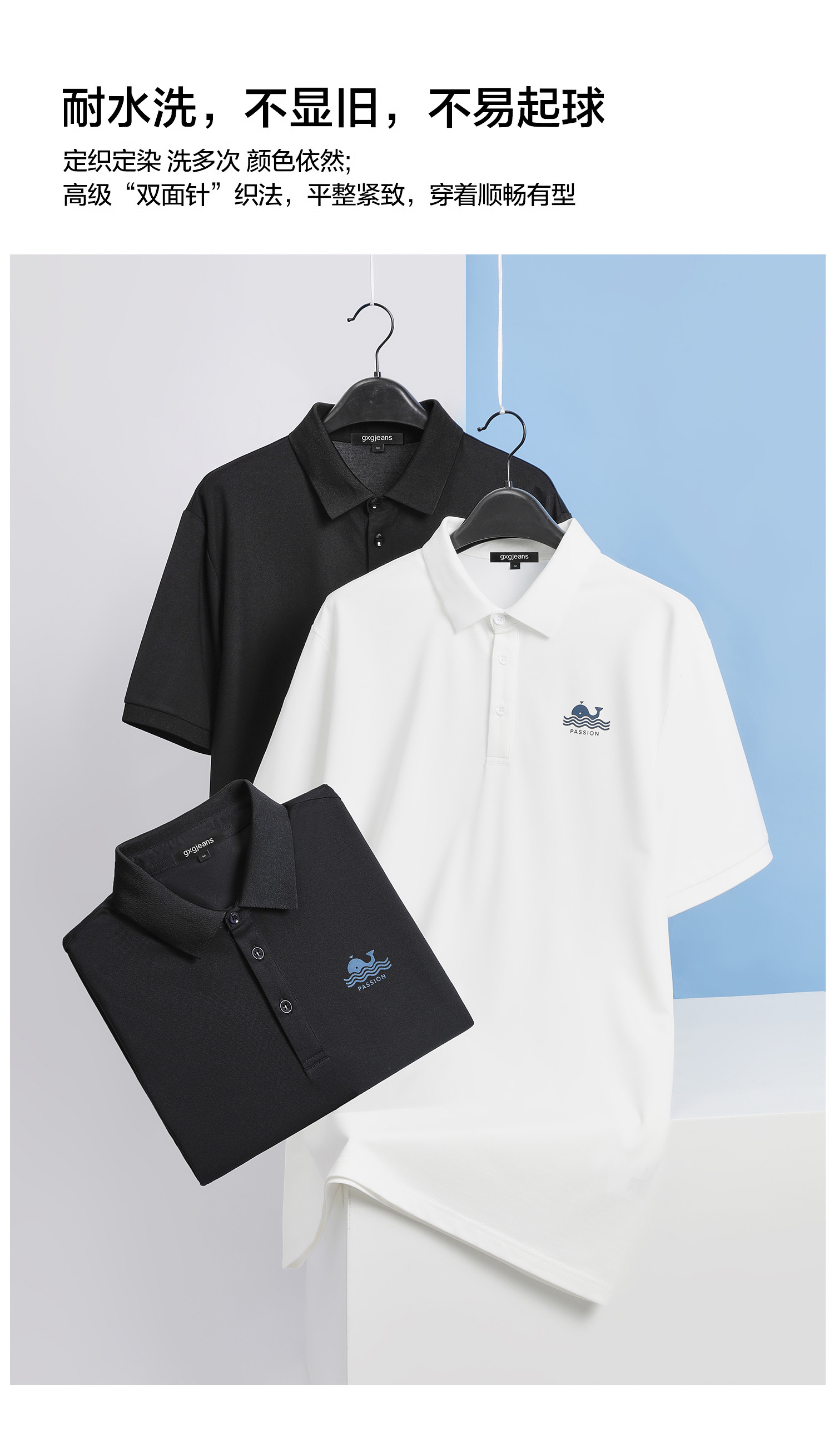 gxgjeans【含桑蚕丝】凉感翻领短袖T恤25夏季商务透气亲肤POLO衫男K&C