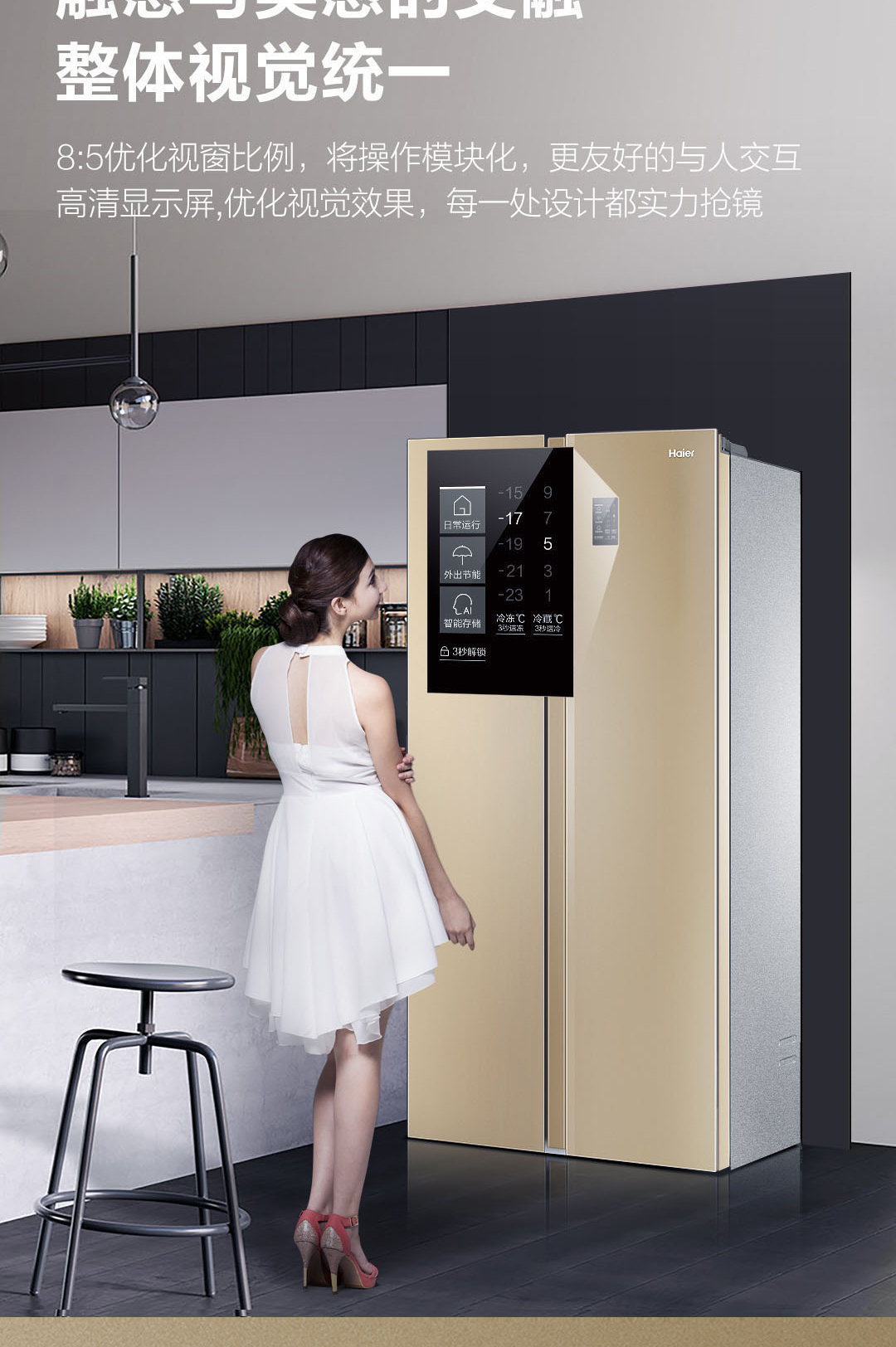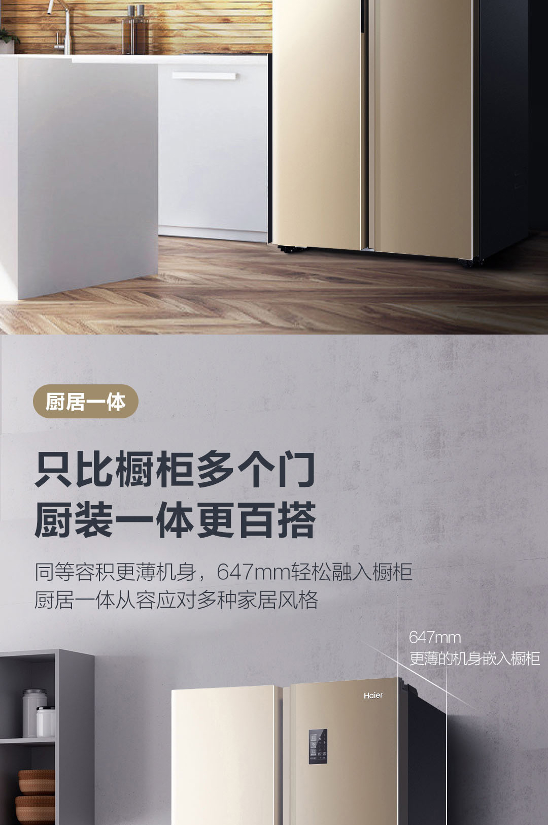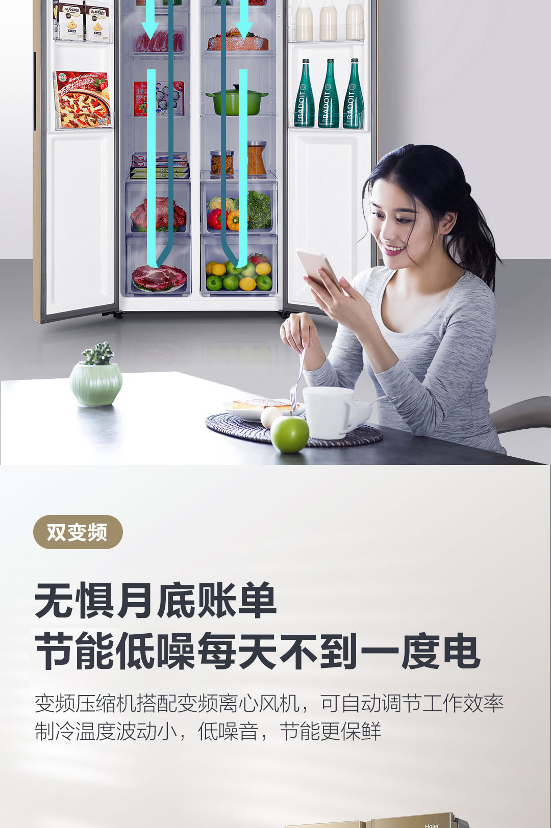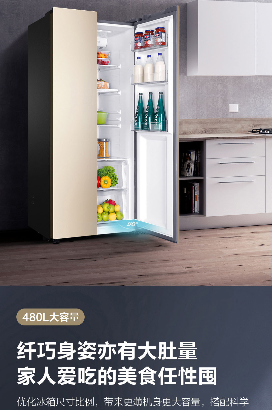【下单前请先与客服联系】海尔 (Haier )480升风冷无霜变频智能对开门双门冰箱90°悬停门双变频金色BCD-480WBPT