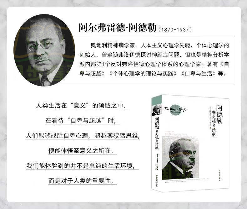 《阿德勒谈灵魂与情感》阿德勒对人类个体心理有出色的研究并取得卓著成就。他所倡导的个性发展与社会精神,对现代心理学产生深刻影响。《阿德勒谈灵魂与情感》集中体现了他关于灵魂与情感方面的见解和学说。相信读者会从阿德勒的思想体系中体会到个体心理学特性的魅力,从而帮助我们省察自己的生活风格,寻求适合自我的超越,为您正确面对折和解决各种矛盾起到引导、启示作用。