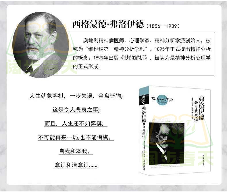 《弗洛伊德谈自我意识》意识即自觉,凡是自己能察觉的心理活动是意识,它属于人的心理结构的表层,它感知着外界现实环境和刺激,用语言来反映和概括事物的理性内容。前意识是调节意识和无意识的中介机制。前意识是潜意识的一部分,是一种可以被回忆起来的、能被召唤到清醒意识中的部分,它的作用更体现在阻止潜意识进入意识,它起着“检查”作用,绝大部分充满本能冲动的潜意识被它控制,不可能变成前意识,更不可能进入意识。潜意识(又称无意识),则是在意识和前意识之下受到压抑的没有被意识到的心理活动,代表着人类更深层、更隐秘、更原始、更根本的心理能量。“潜意识”是人类一切行为的内驱力,它包括人的原始冲动和各种本能(主要是性本能)以及同本能有关的各种欲望。