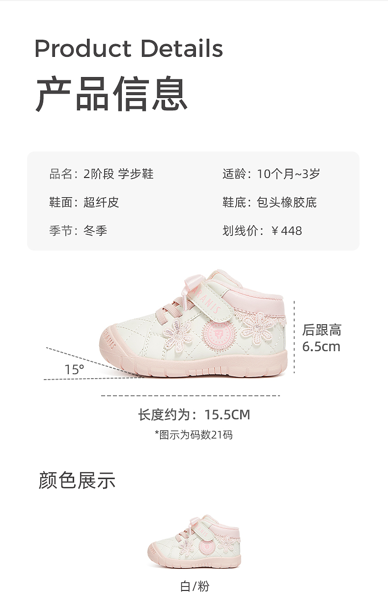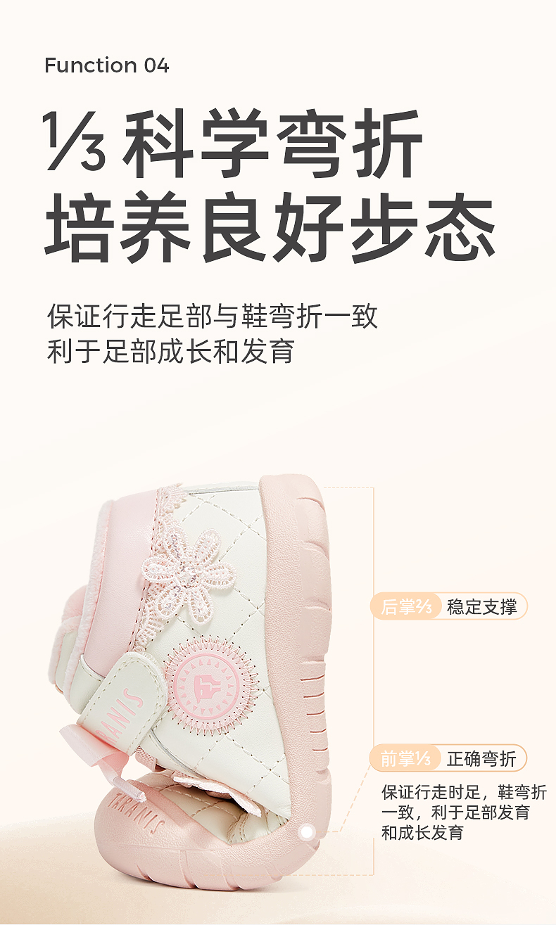泰兰尼斯童鞋冬季新款218婴儿学步鞋女宝宝加绒保暖儿童机能鞋子 T01T4D5632