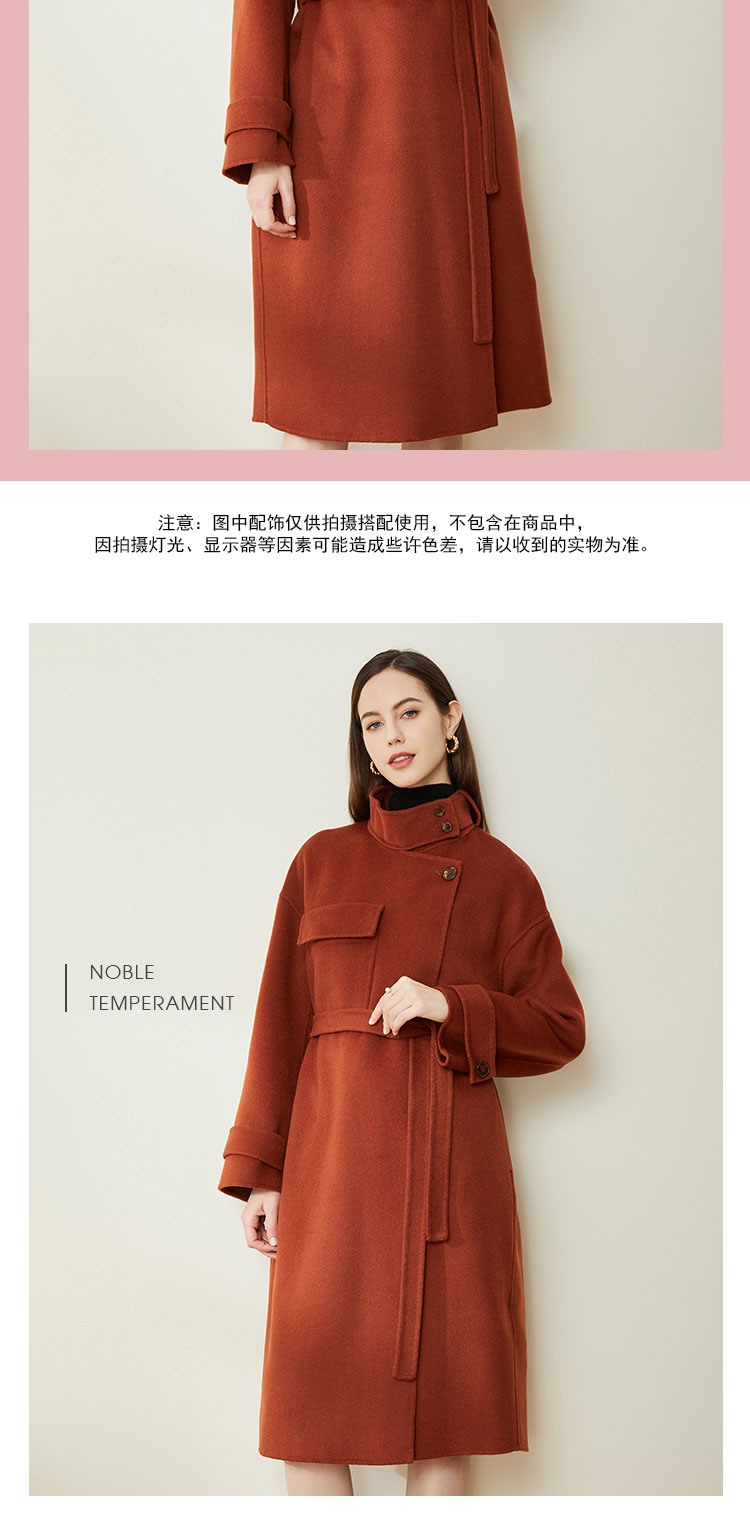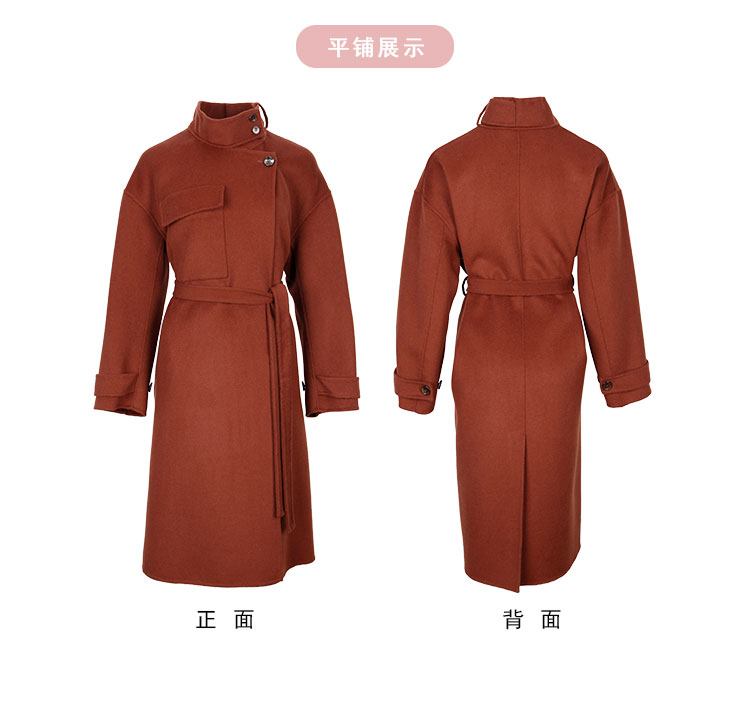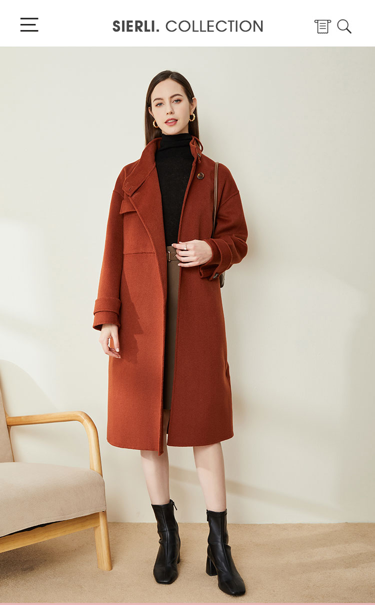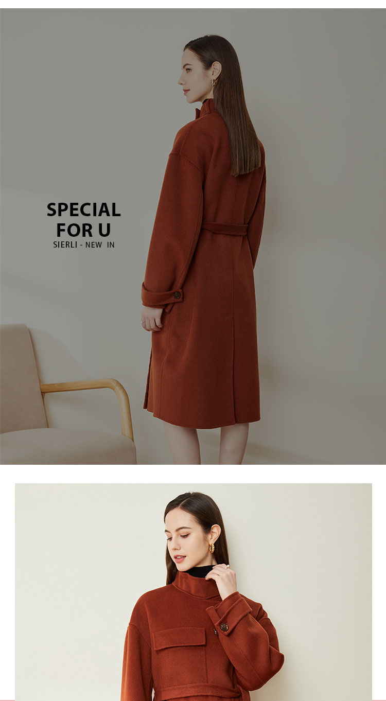 LH9W1斯尔丽瑟俪2021年新款立领双面呢极简风大口袋纯色大衣女外套