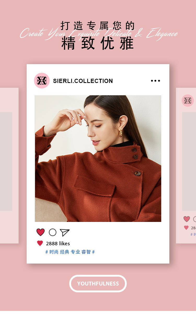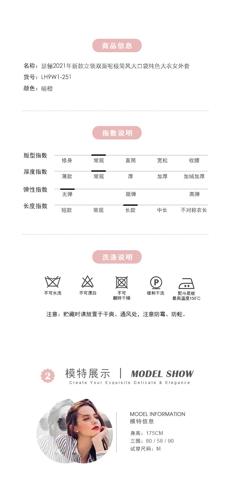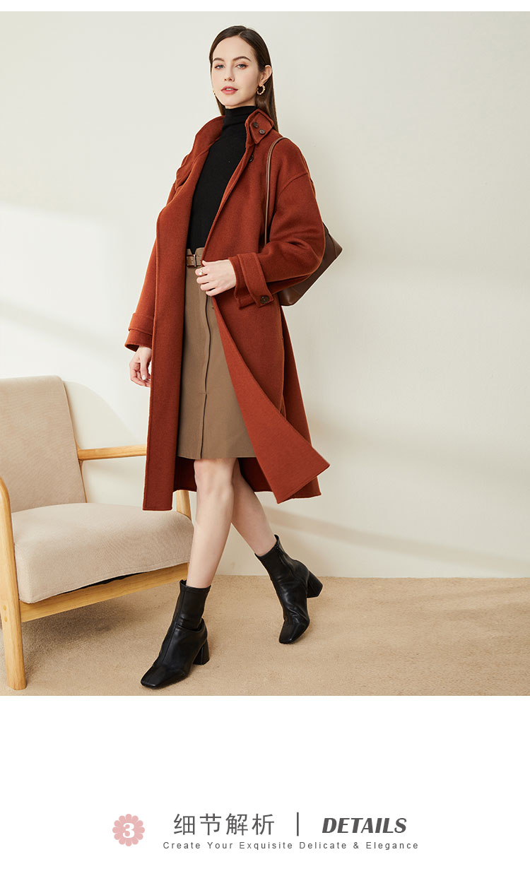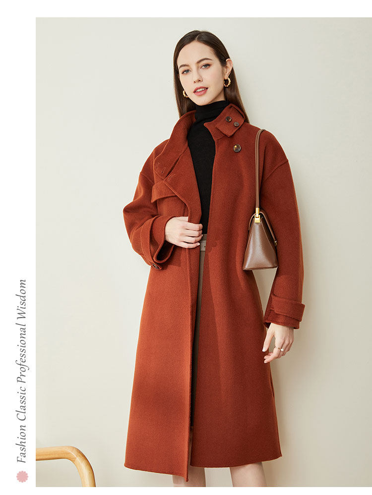 LH9W1斯尔丽瑟俪2021年新款立领双面呢极简风大口袋纯色大衣女外套
