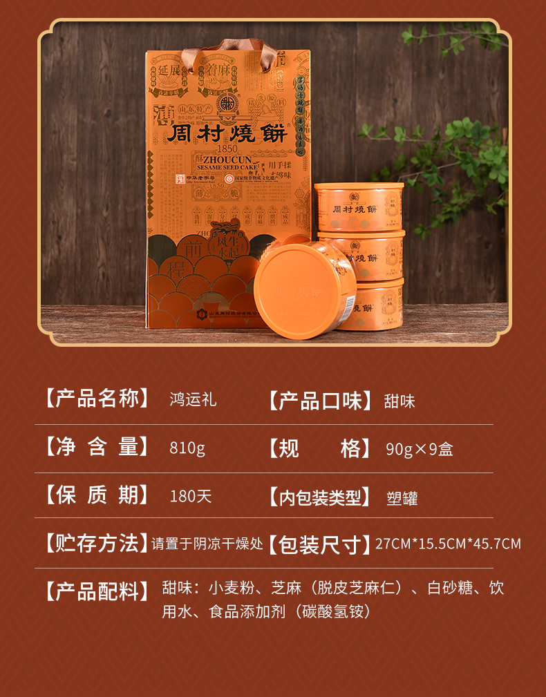 周村牌周村烧饼山东特产鸿运礼90g*9盒甜味孕妇零食