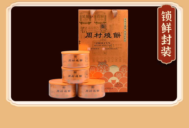 周村烧饼山东特产福禄穰穰礼盒甜咸芝麻饼各半中华老字号85gx8罐