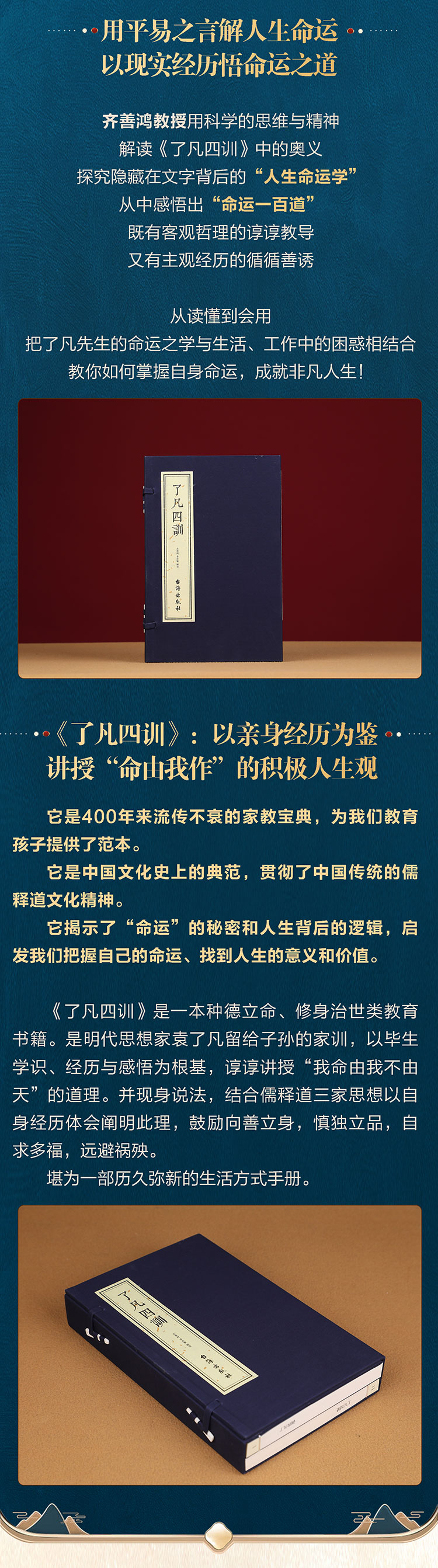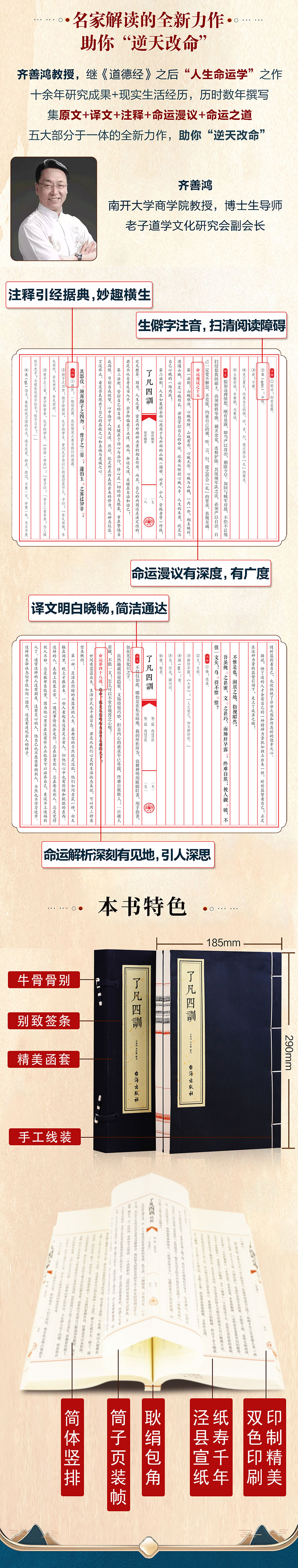齐善鸿《了凡四训》 五部曲 原文+译文+注释+命运漫议+命运之道 宣纸线装版 1函2册