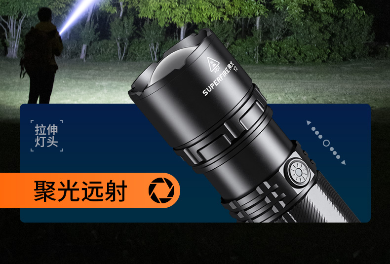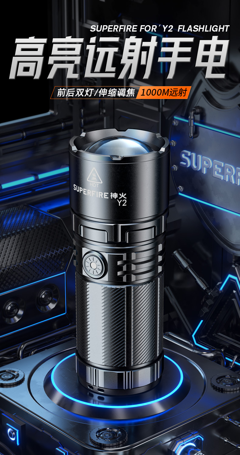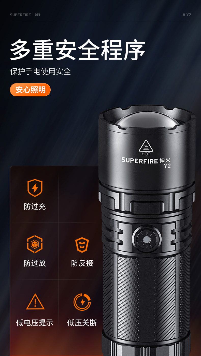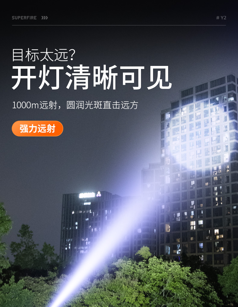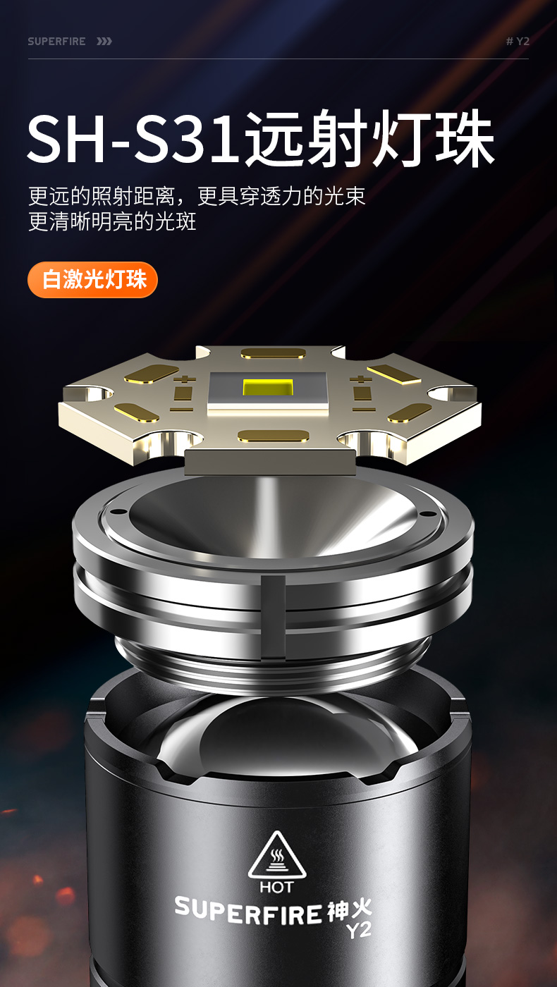 SUPERFIRE神火Y2超亮户外远射可充电超长续航大功率激光手电筒