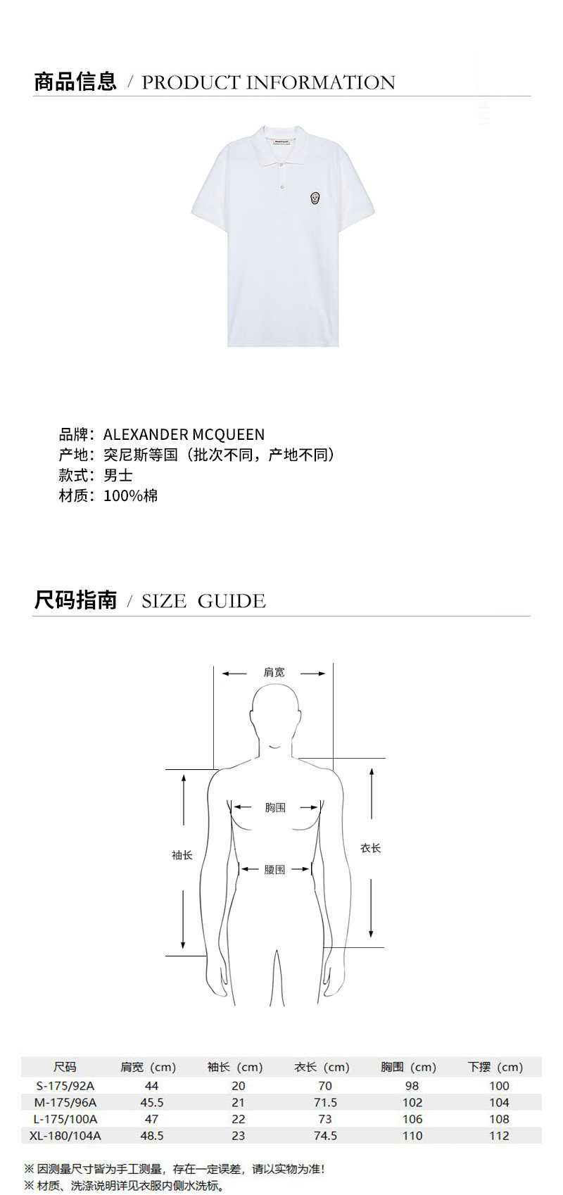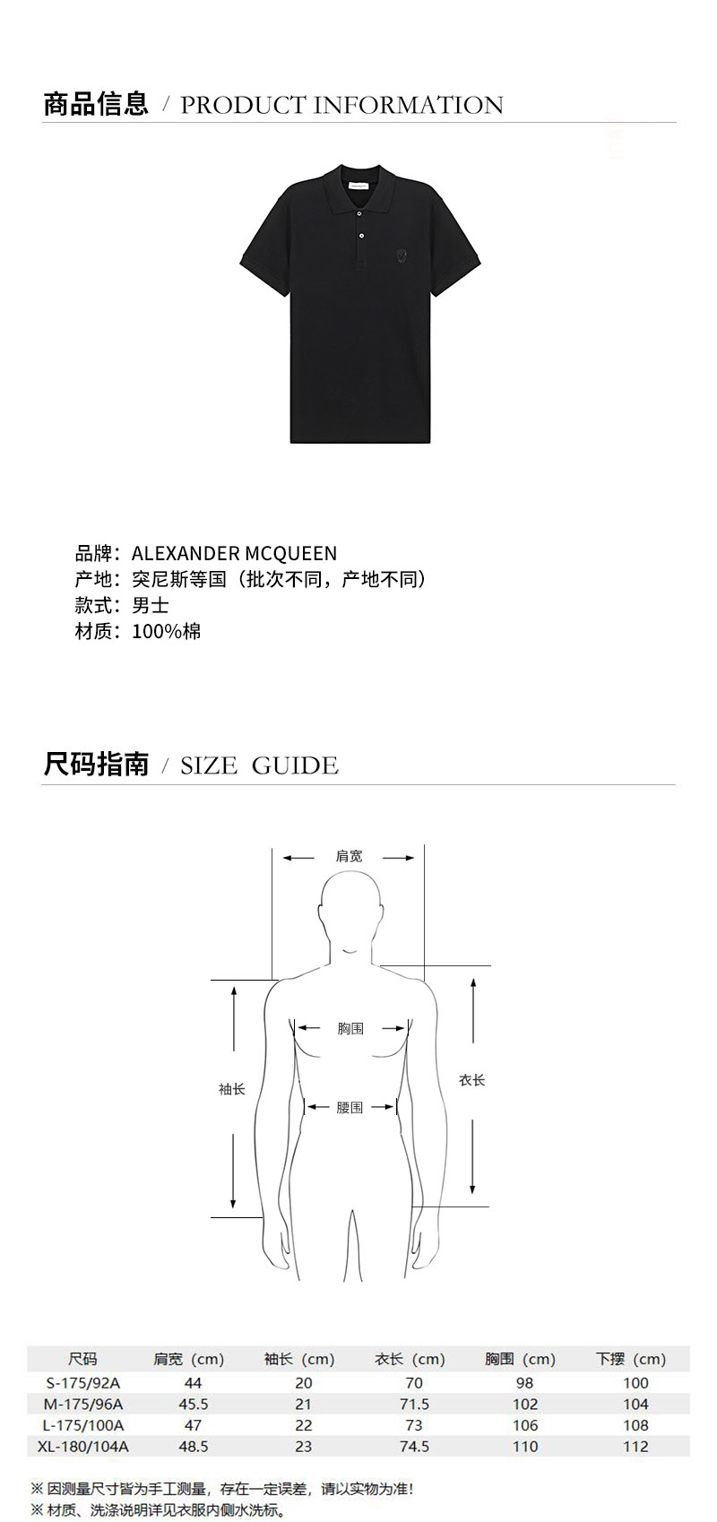 2021春夏 Alexander McQueen/亚历山大麦昆 男士短POLO 男士棉质短袖POLO衫 622106 QQX33