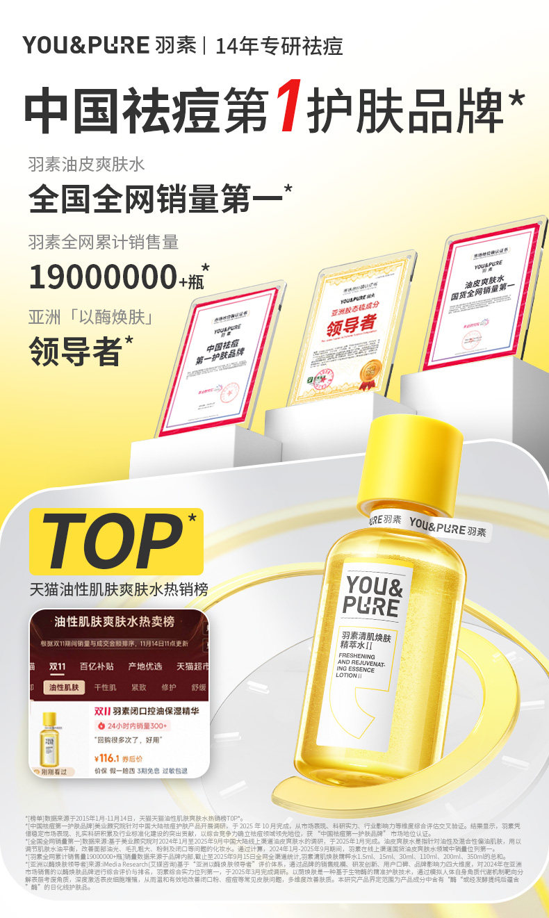 【陈梦推荐】羽素闭口水爽肤水 去粉刺糙皮控油湿敷保湿舒缓收毛孔爽肤