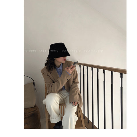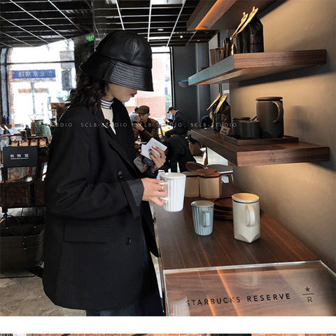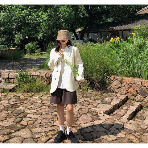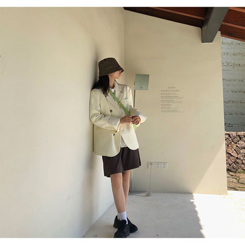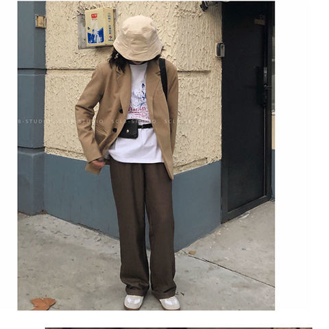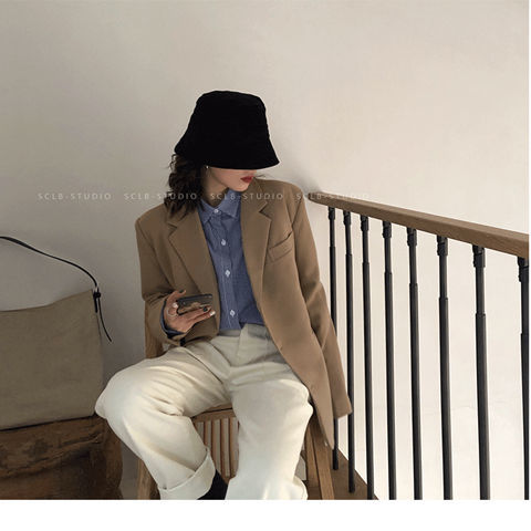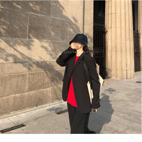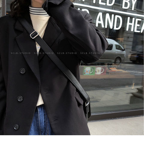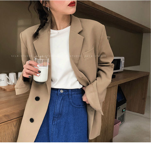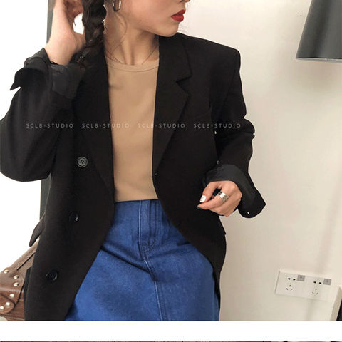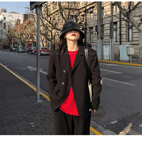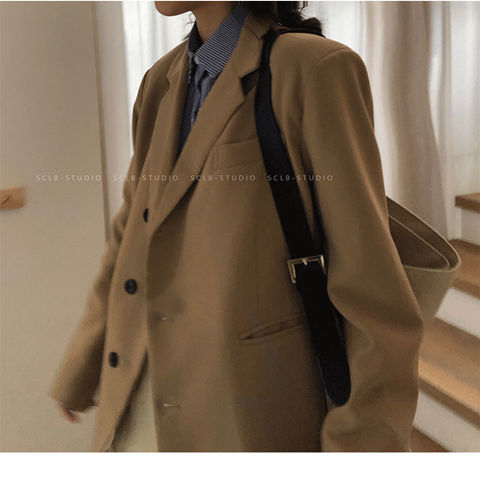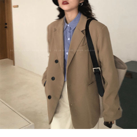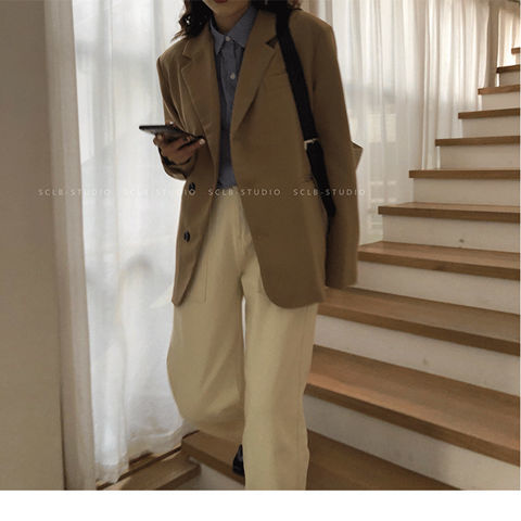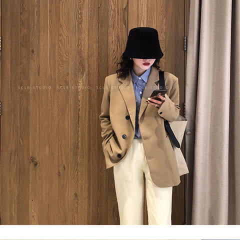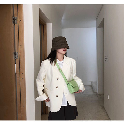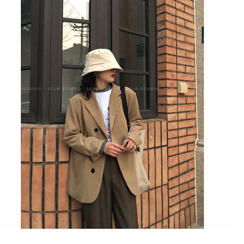 黑色西装外套女秋冬新款韩版宽松时尚单排扣卡其色白色西服