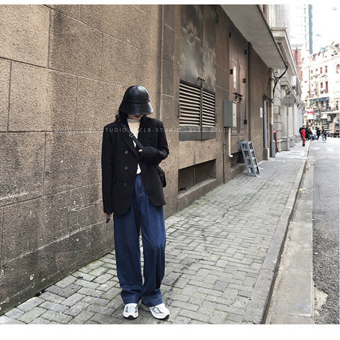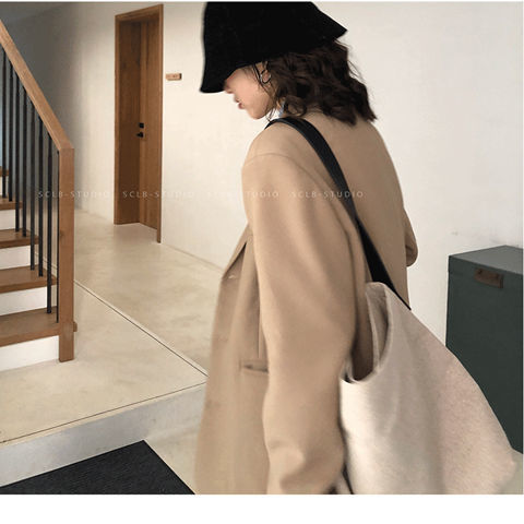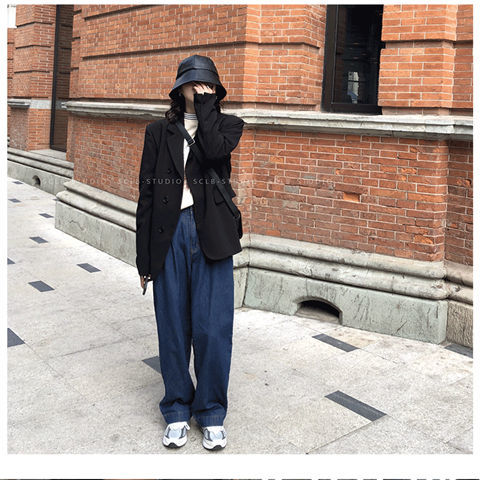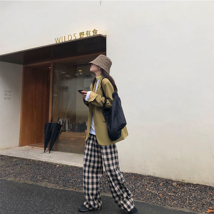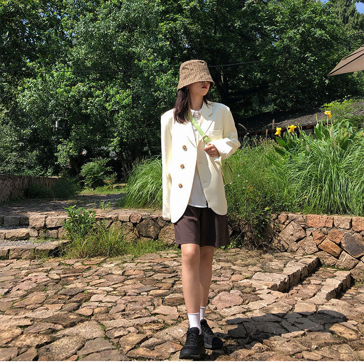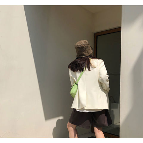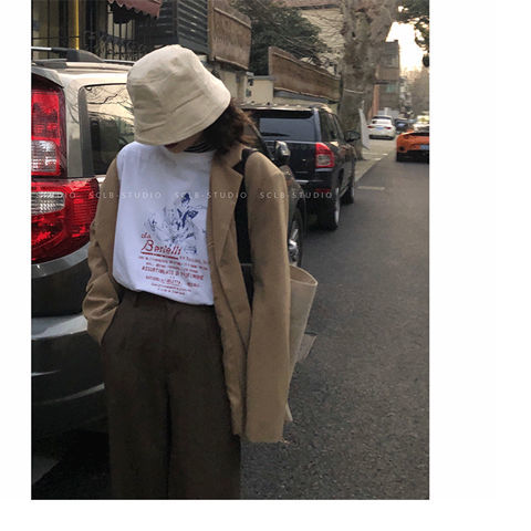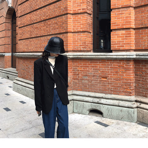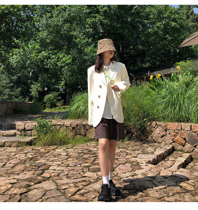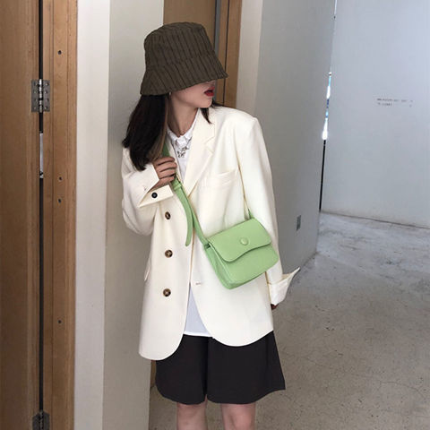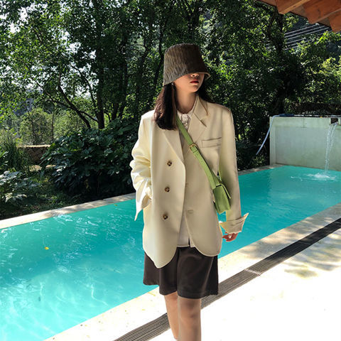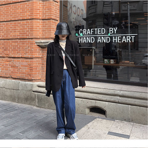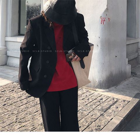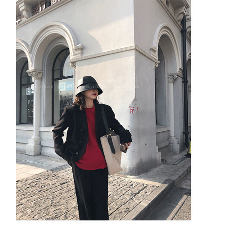 黑色西装外套女秋冬新款韩版宽松时尚单排扣卡其色白色西服