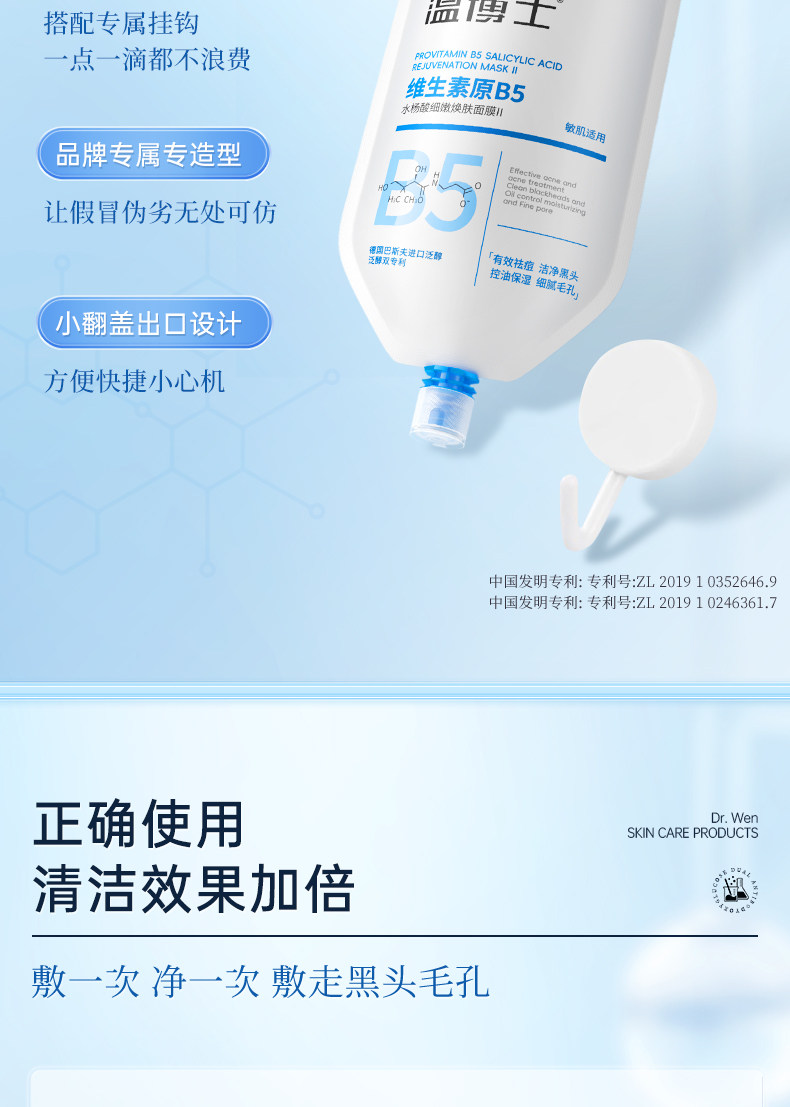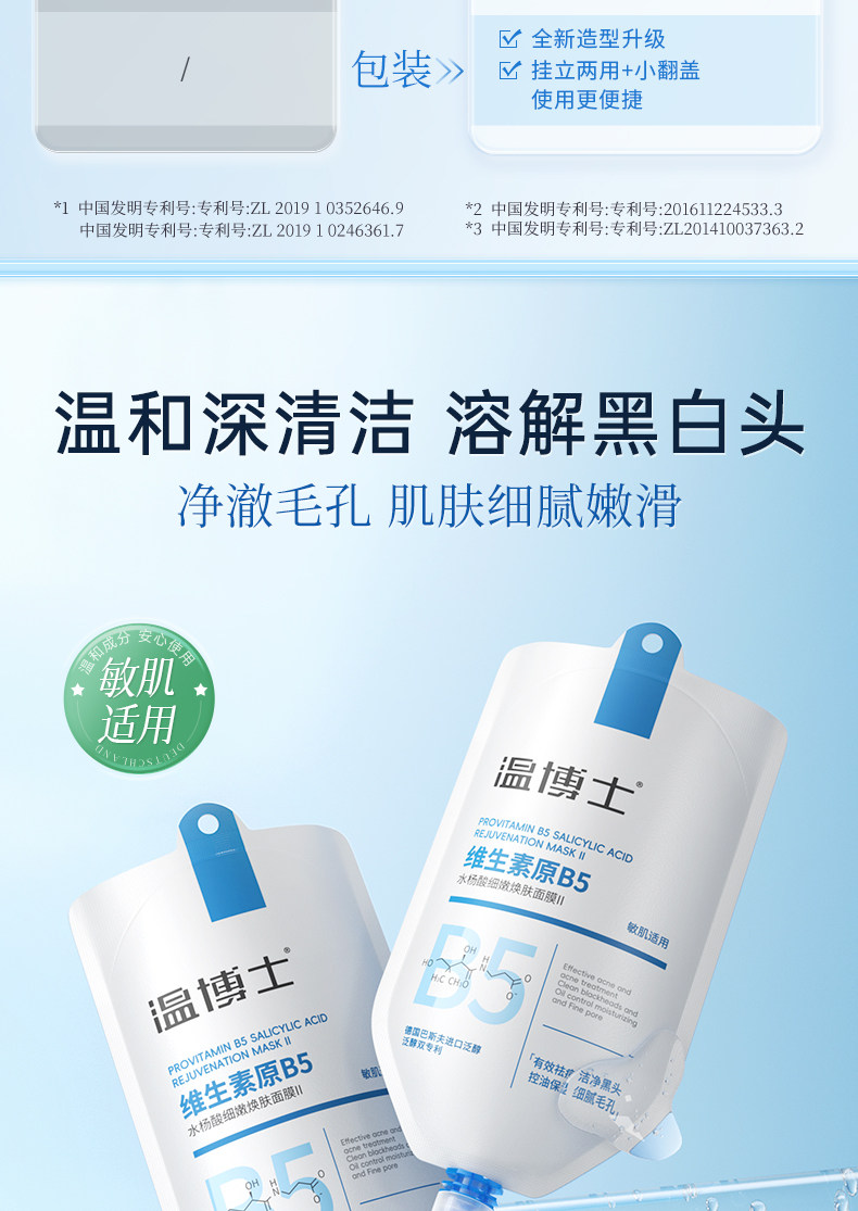温博士B5清洁面膜 水杨酸毛孔去黑头闭口粉刺泥膜深层清洁补水收缩