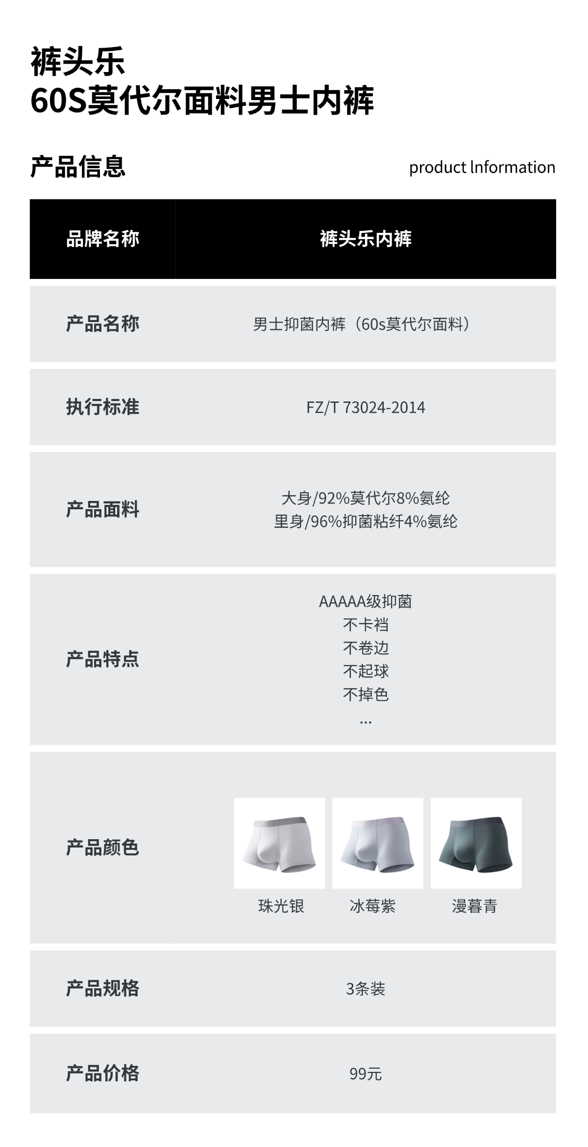 裤头乐 男女款60s莫代尔内裤 5A级抑jun里裆;立体无痕工艺无痕弹力腿口设计;不夹不勒;贴身柔软细腻 舒适透气,独立包装