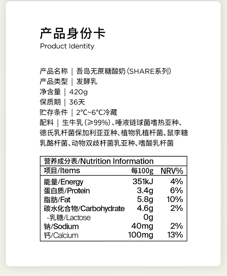 吾岛无蔗糖酸奶420g