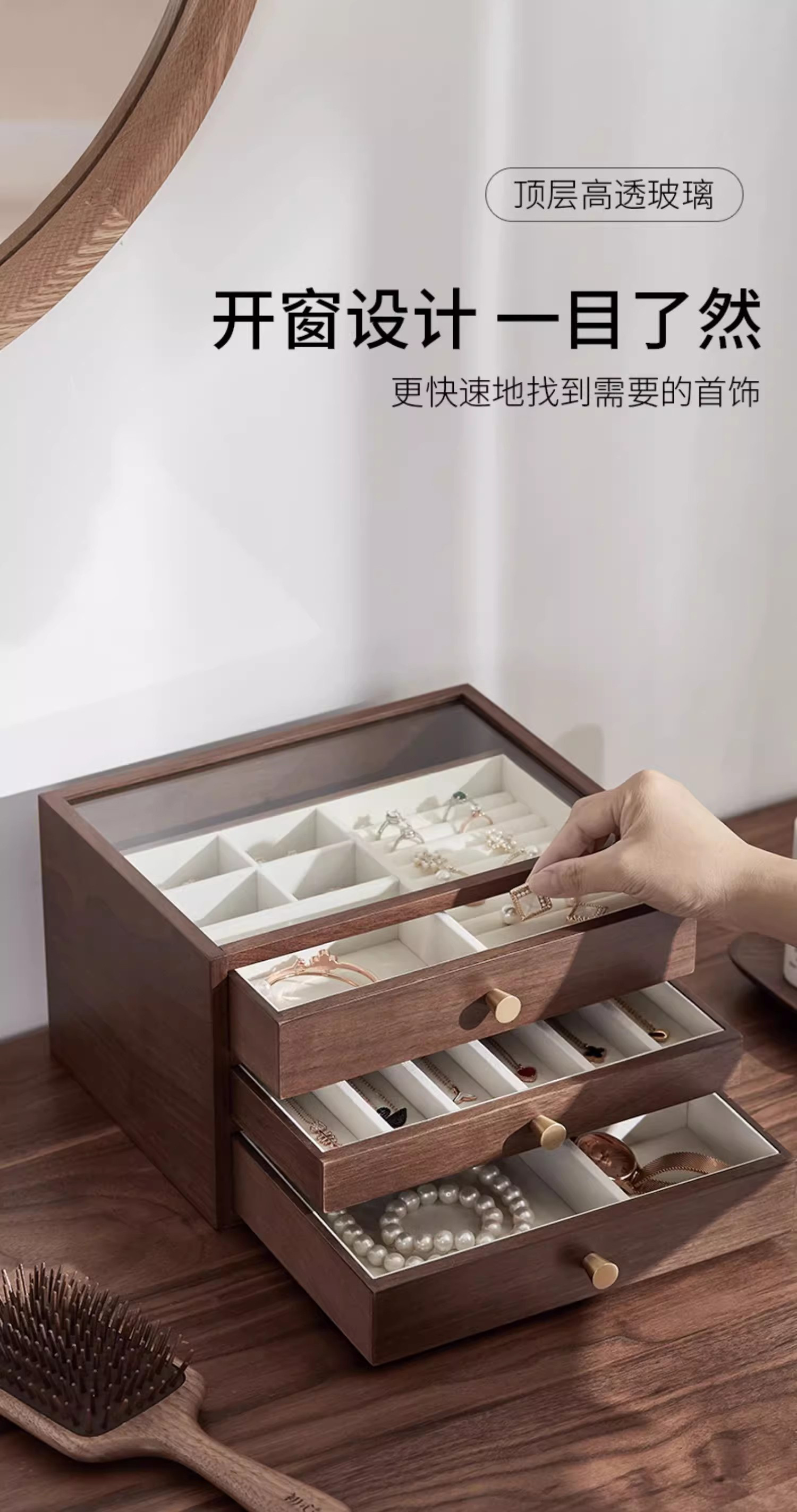 放一些平常的首饰,出门佩戴一目了然