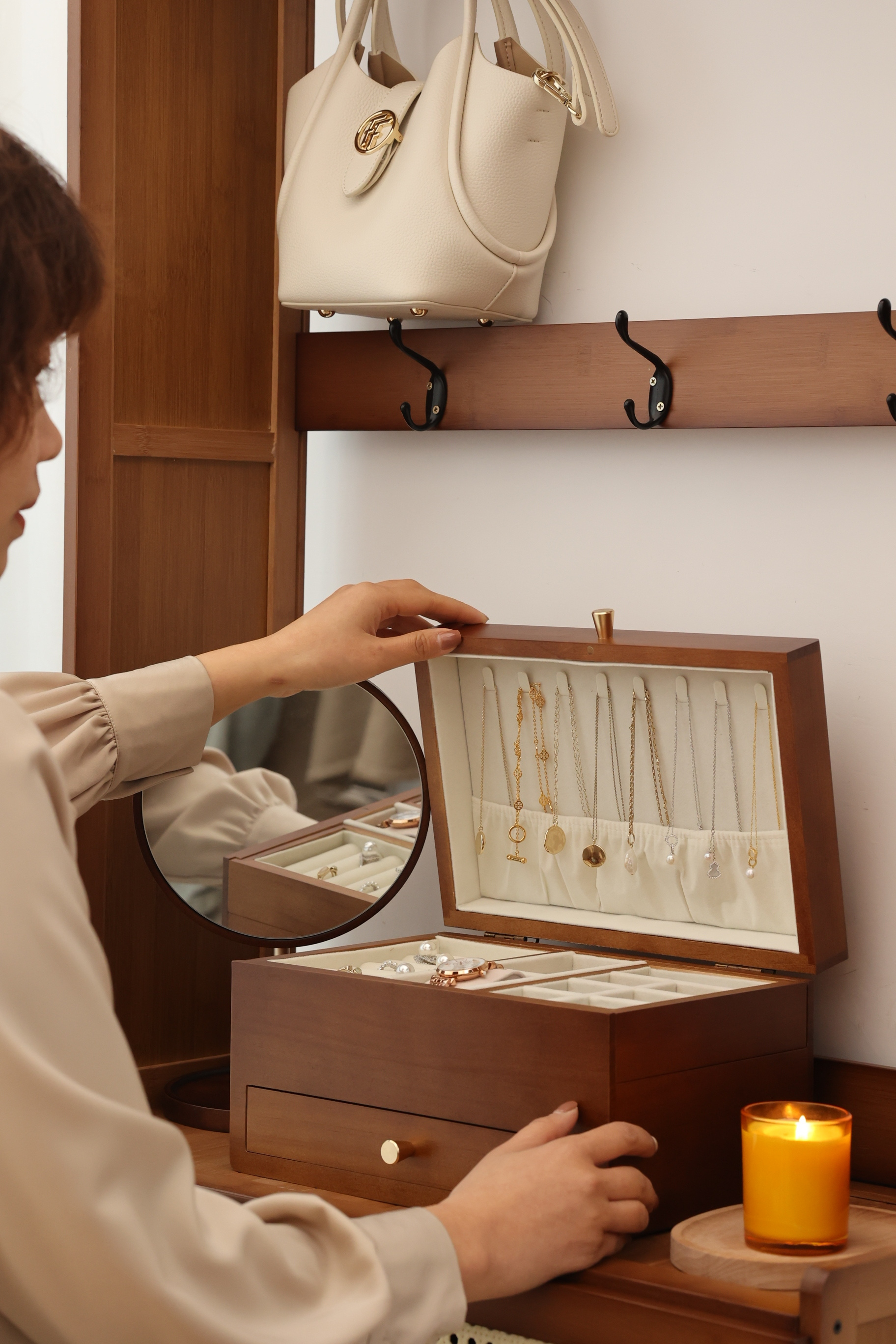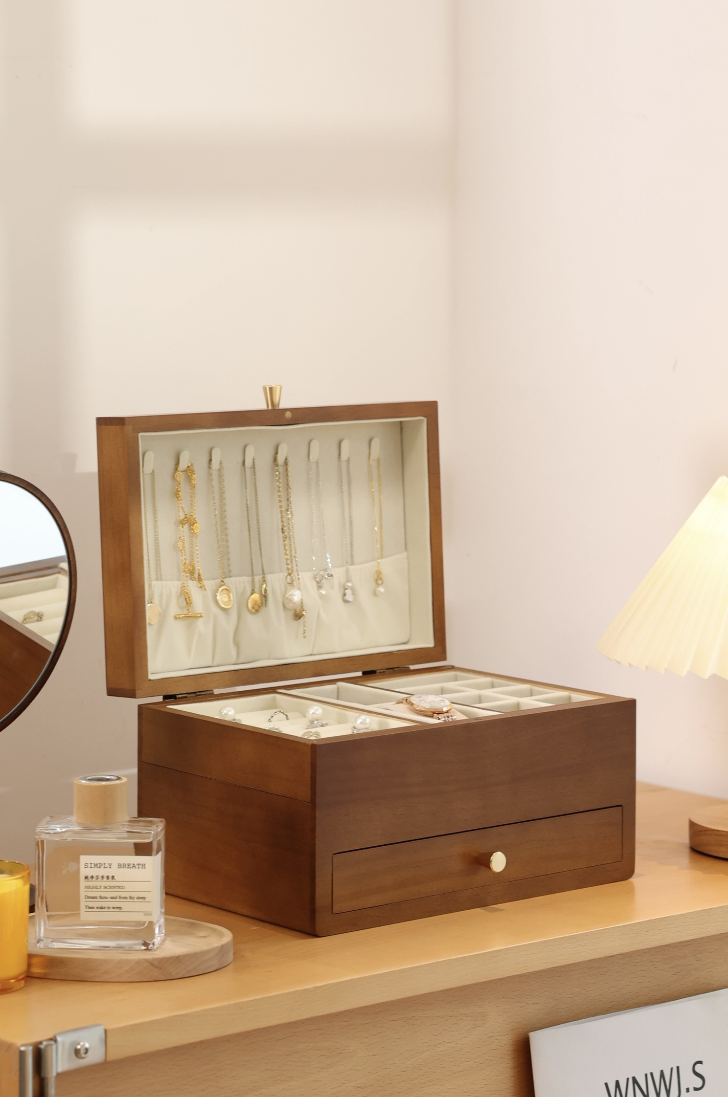 第三层可以用它来放项链发簪手表等